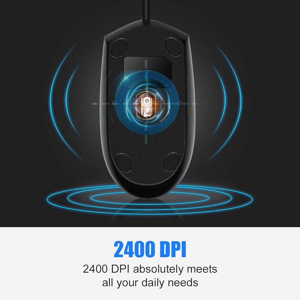 ✔【دقة عالية】ماوس بصري بثلاثة أزرار مع حساسية 2400 نقطة لكل بوصة، هذا الماوس ليس فقط ذو مظهر أملس للغاية وسريع ودقيق، ولكن مستوى الراحة مذهل. سواء للعمل اليومي أو ممارسة الألعاب، يوفر رد فعل سريع وتشغيل سلس