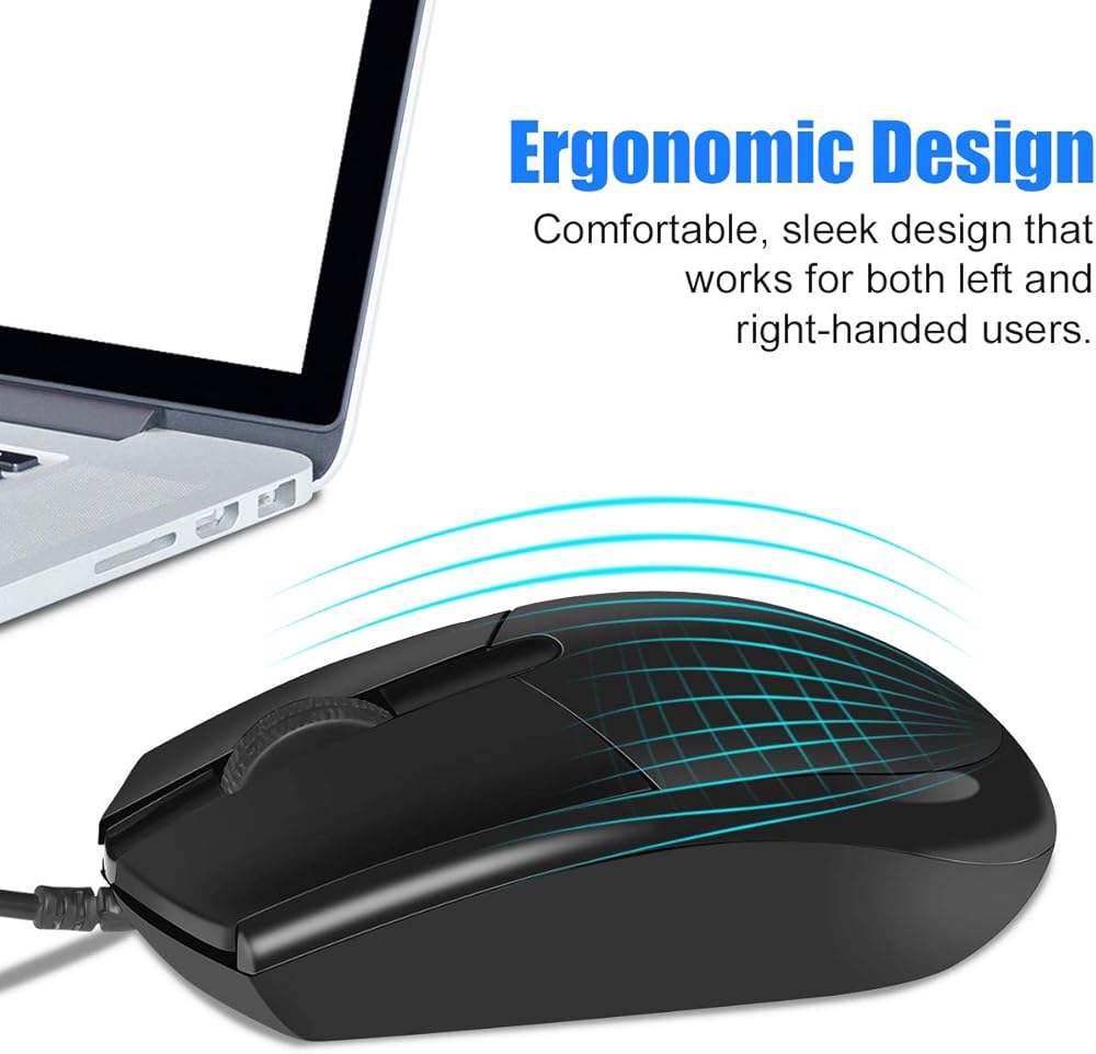 ✔[تصميم مريح] يبلغ مقاس الماوس السلكي 4.5 بوصة × 2.5 بوصة × 1.3 بوصة مع كابل بطول 4.59 قدم (1.4 متر)، مصنوع من بلاستيك متين مقاوم للكسر للحصول على تصميم مريح وأنيق يناسب مستخدمي اليد اليسرى واليمنى على حد سواء.