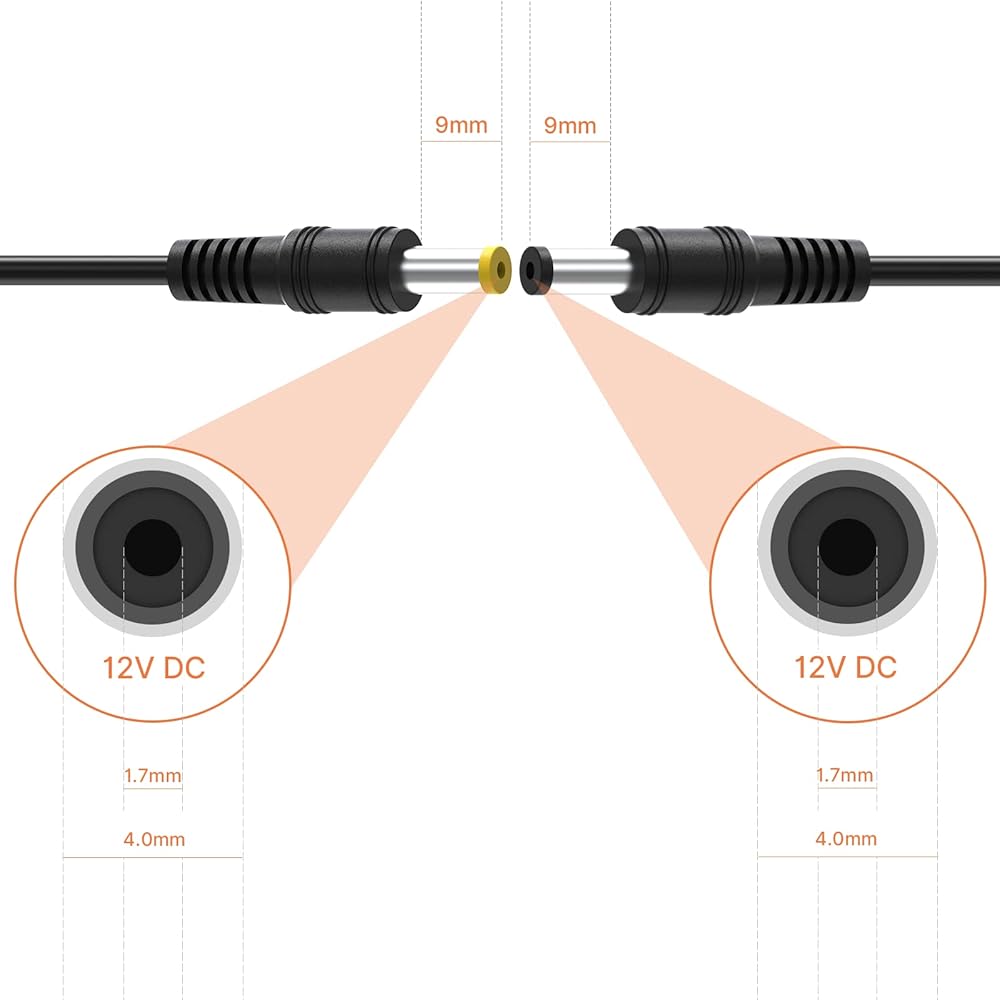 - ذكر إلى ذكر 4.0 مم × 1.7 مم إلى 5.5 مم × 2.1 مم كابل محول الطاقة DC