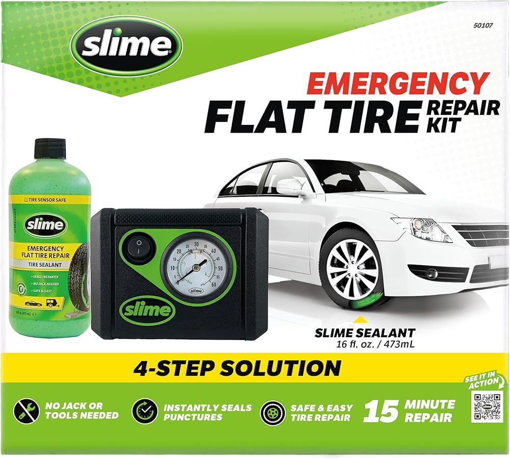 Sealant + air for a complete tire repair (includes 15 oz of tire sensor safe Slime emergency repair sealant and a powerful tire inflator)