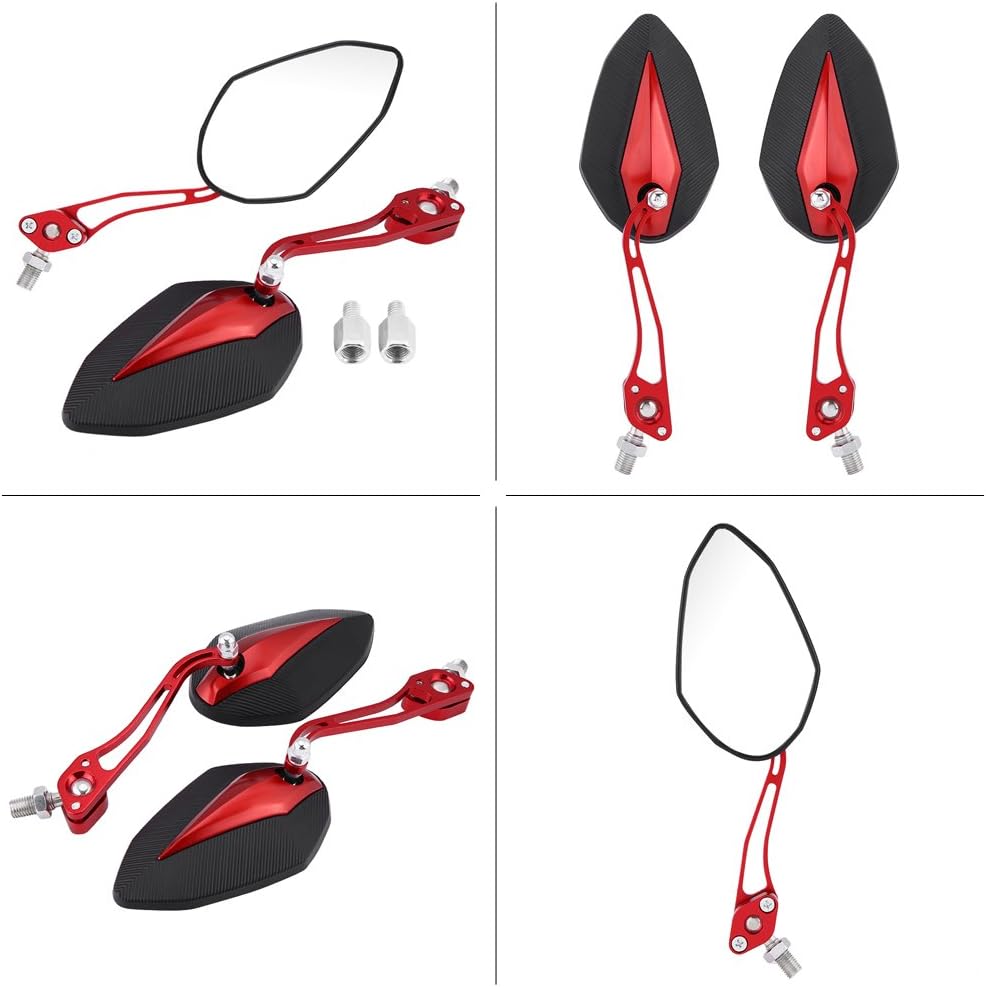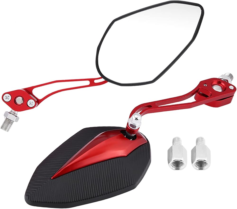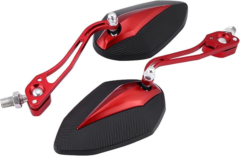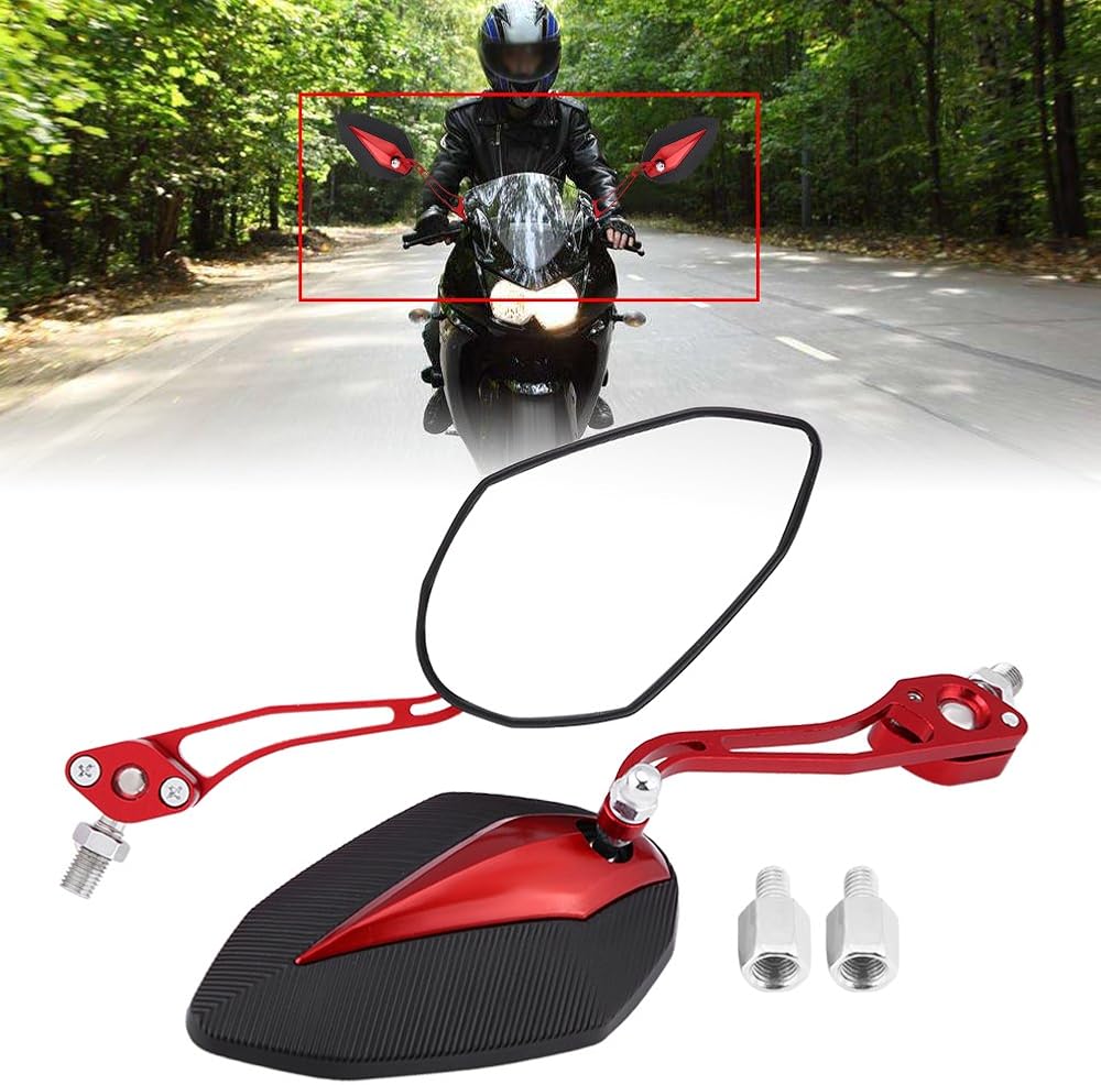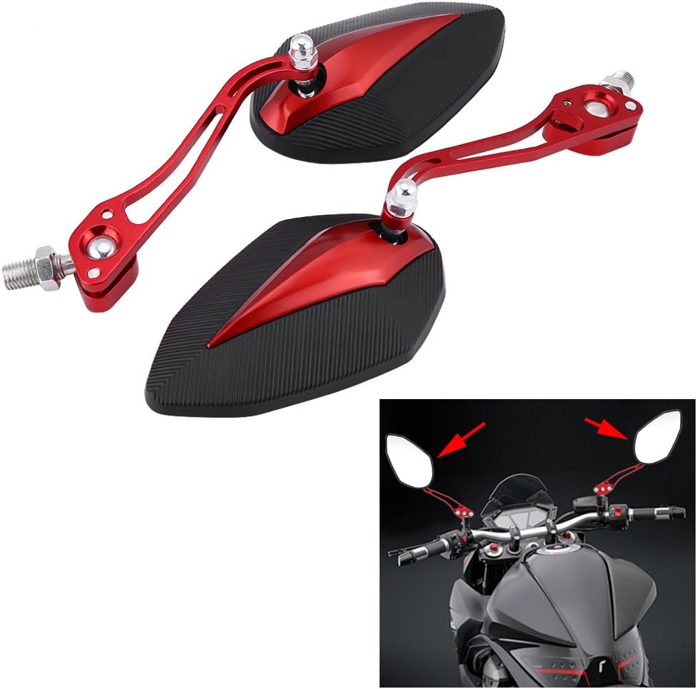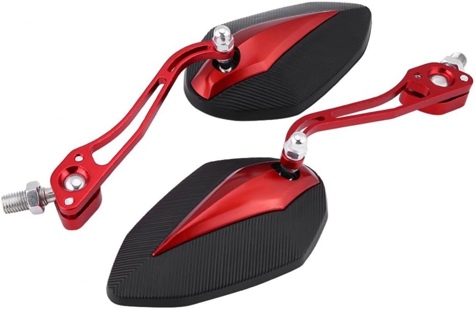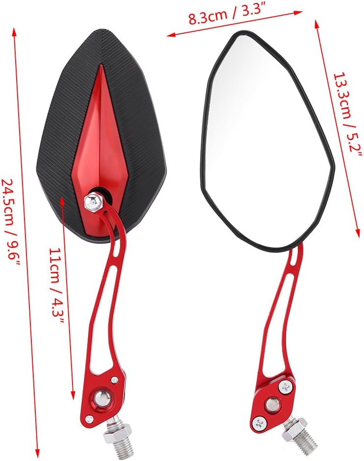 【ملاءمة عالمية】-- مرآة الرؤية الخلفية العالمية تناسب معظم الدراجات النارية بمواصفات لولبية 10 مم/8 مم، مثل ياماها وهوندا. تصميم أنيق يمكن أن يزين دراجتك النارية بشكل أكثر نبلاً وعصرية