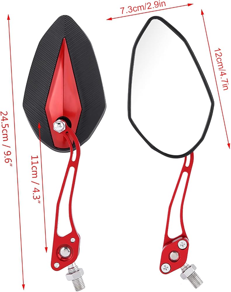 【قوية ومقاومة للصدأ】-- مرآة الرؤية الجانبية للدراجة النارية الخاصة بنا مصنوعة من مادة سبائك الألومنيوم الممتازة، متينة، ليس من السهل أن تتقدم في السن ومقاومة للتآكل، لضمان أقصى قدر من القوة والمتانة للاستخدام طويل الأمد.