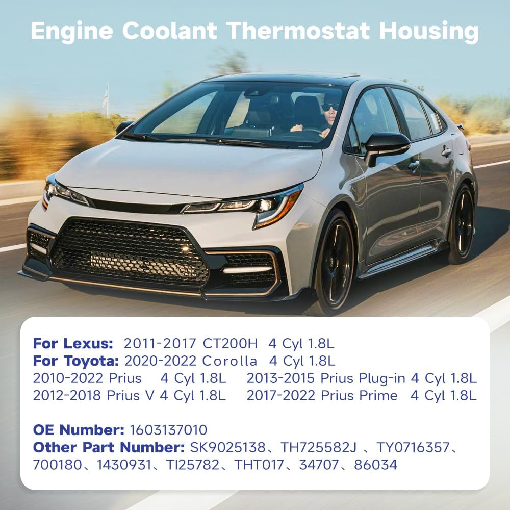 【Vehicle Fitment】Thermostat housing is compatible with Toyota Corolla 2020-2022 1.8L ǀ Toyota Prius 2010-2022 1.8L ǀ Toyota Prius Plug-In 2013-2015 1.8L ǀ Toyota Prius Prime 2017-2022 1.8L ǀ Toyota Prius V 2012-2018 1.8L