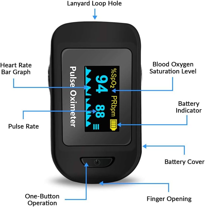 • قراءات دقيقة وموثوقة وسريعة: نتائج متسقة تم اختبارها سريريًا وثبت كفاءتها؛ احصل على نتائج SpO2 للدم ومعدل النبض وقوة النبض خلال 8 إلى 10 ثوانٍ على شاشة OLED رقمية حمراء كبيرة