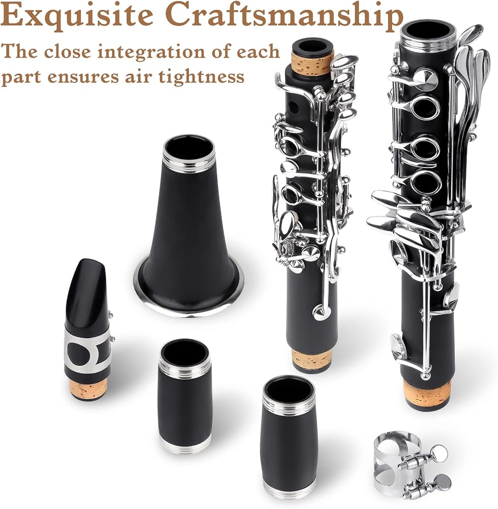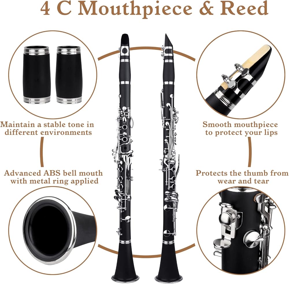 مجموعة كاملة -- تتضمن مجموعة الكلارينيت للمبتدئين هذه كلارينيت - آلة موسيقية وحافظة كلارينيت وحامل وقطعة فم وقطعة قماش للتنظيف ومفك براغي وقفازات و10 قصب. جودة عالية وسعر فعال من حيث التكلفة هو خيار رائع لاستخدامك الخاص أو كهدية لأطفالك وأصدقائك. لقد ابتكرنا كلارينيت بأسعار معقولة لأحلام لا تقدر بثمن، مما وفر للآباء التكلفة العالية لاستئجار الأدوات للفرق الموسيقية والأوركسترا.