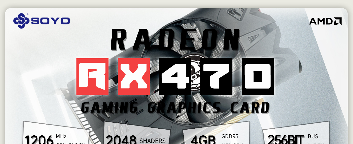 بطاقة رسومات SOYO AMD Radeon RX470، بطاقة فيديو 4 جيجابايت GDDR5 256 بت لألعاب الكمبيوتر مع منفذ عرض HDMI DVI PCI Express x 16 3.0 بطاقة رسومات للألعاب بمروحة واحدة
