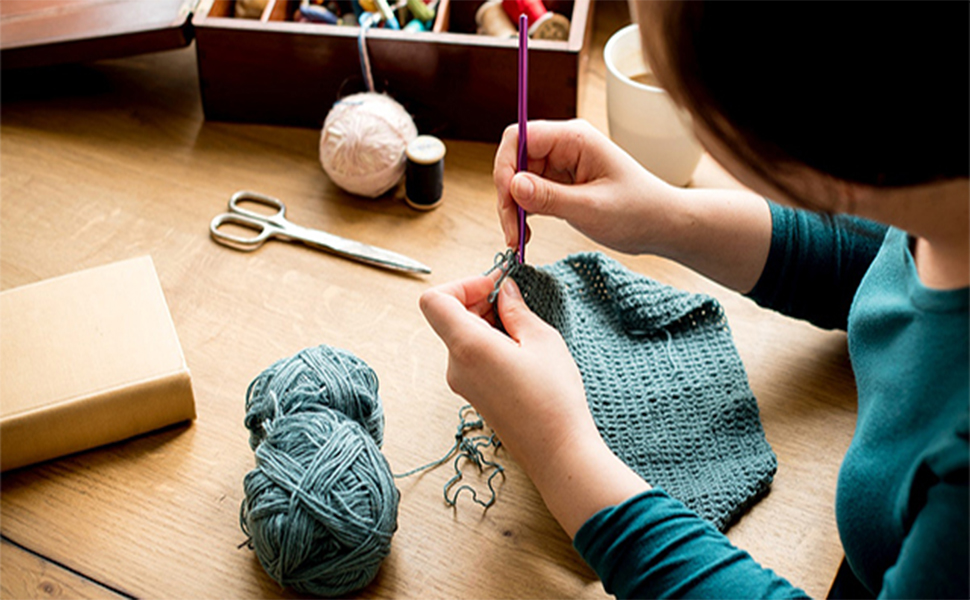 🖤ناعم وسهل الاستخدام --- خطاف الكروشيه مصنوع من الألومنيوم عالي الجودة، وخفيف الوزن والمتانة، والإبر ذات الطرف الناعم لا تمزق الغزل أو تقسم الغزل بشكل لطيف، ومقبض مريح يتيح الكروشيه لفترة طويلة دون إزعاج.