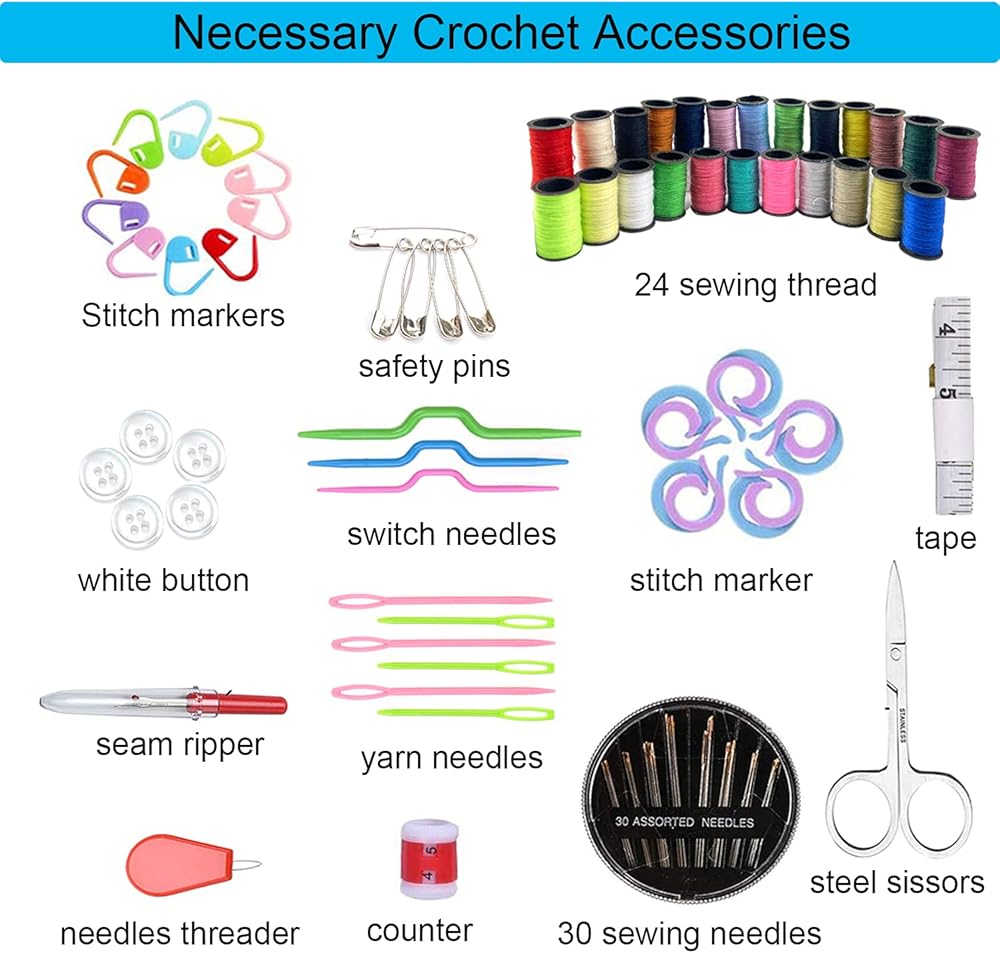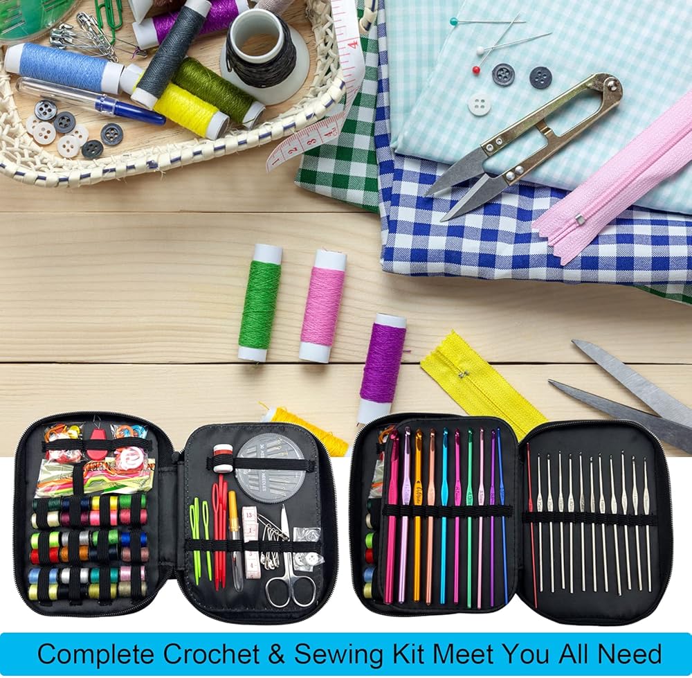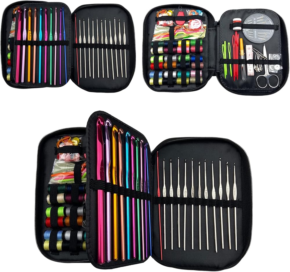 Weabetfu 121 قطعة من خطافات الكروشيه ومجموعة الخياطة، وخطاطيف كروشيه من الألومنيوم وخطاف كروشيه من الدانتيل، وخطاف كروشيه للحياكة، مجموعة كروشيه كاملة للمبتدئين، ملحقات متضمنة للمسافر