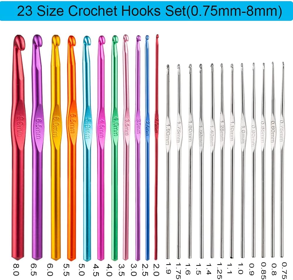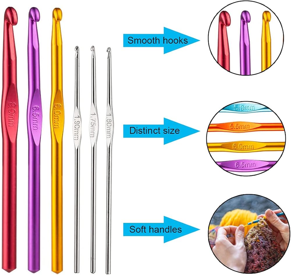 🖤مجموعة كاملة --- تحصل على مجموعة خطافات الكروشيه المريحة الأكثر اكتمالًا، تحتوي كل مجموعة كروشيه على 11 خطافًا كروشيه من الألومنيوم و12 خطافًا كروشيه من الحديد الدانتيل، وغيرها من ملحقات الكروشيه الضرورية. إنها تلبي احتياجاتك المتنوعة. إنه الخيار الأفضل للمبتدئين والمحترفين في حياكة الكروشيه.