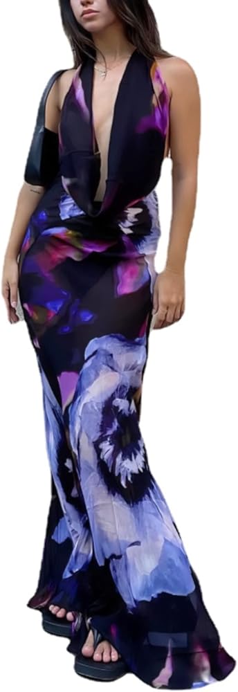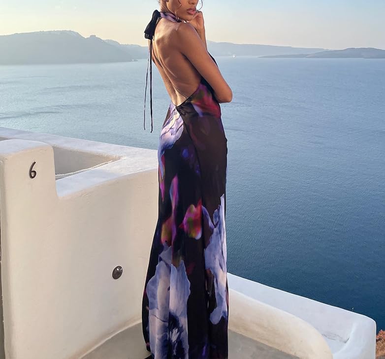 فساتين ماكسي بحزام سباغيتي بدون ظهر للنساء من XPONNI، فستان ضيق من الساتان الأرجواني Y2k، فستان مثير للحفلات الصيفية