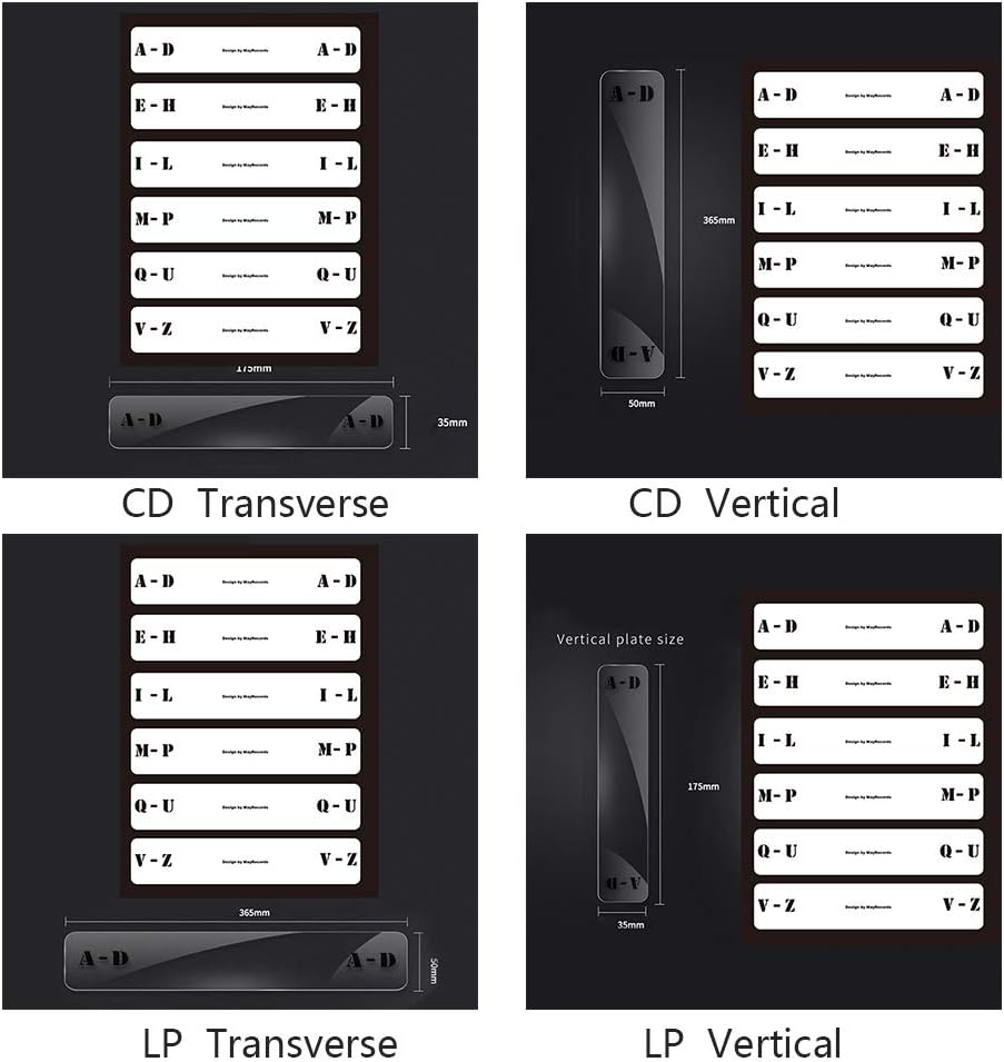 Multifunctional Acrylic Record Organizers: The combination of transparent card and notable letters design allows you to differentiate your CD from LP records easily and conveniently, makes them organized for easy access. Classification cards are protected by dus-t proof film, reaching your hands to ensure clear visibility.