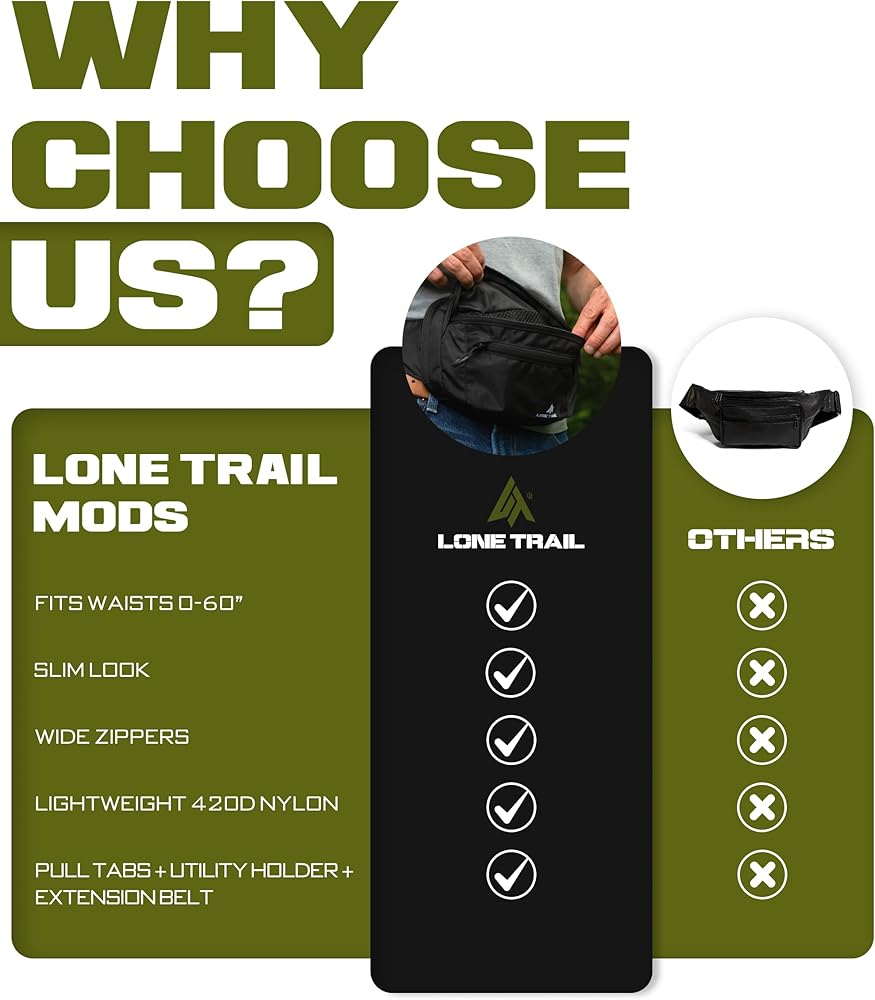 تصميم منخفض - تتميز مجموعة EDC fanny هذه للرجال بمظهر بسيط بحيث تمتزج مع الحياة المدنية. تتجنب حافظة فاني باك الخاصة بنا التصميم التكتيكي الرخو أو العلني للحصول على مظهر أكثر سرية.