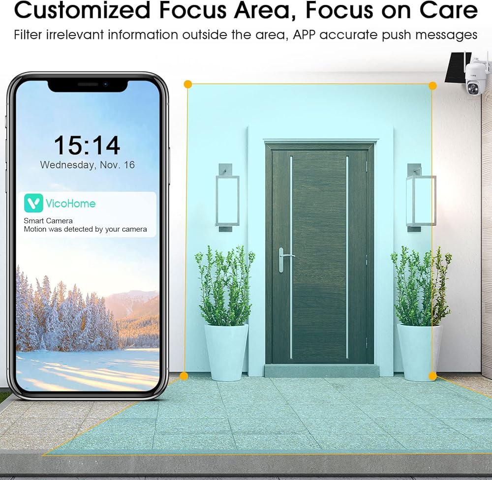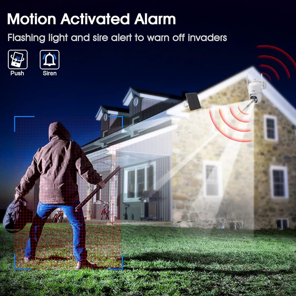 • صورة عالية الوضوح ورؤية ليلية واضحة: تلتقط العناصر الخارجية للكاميرات الشمسية صورًا واضحة تمامًا ليلاً ونهارًا مع عدساتنا الضوئية المتقدمة 2K ومستشعر الألوان 1/3CMOS. يمكنك التقاط أي أدلة في ظروف الإضاءة المنخفضة أو الظلام الشديد باستخدام كاميرات المراقبة المنزلية. مع ذلك، يمكنك الخروج بأمان والنوم بهدوء في الليل أيضًا.