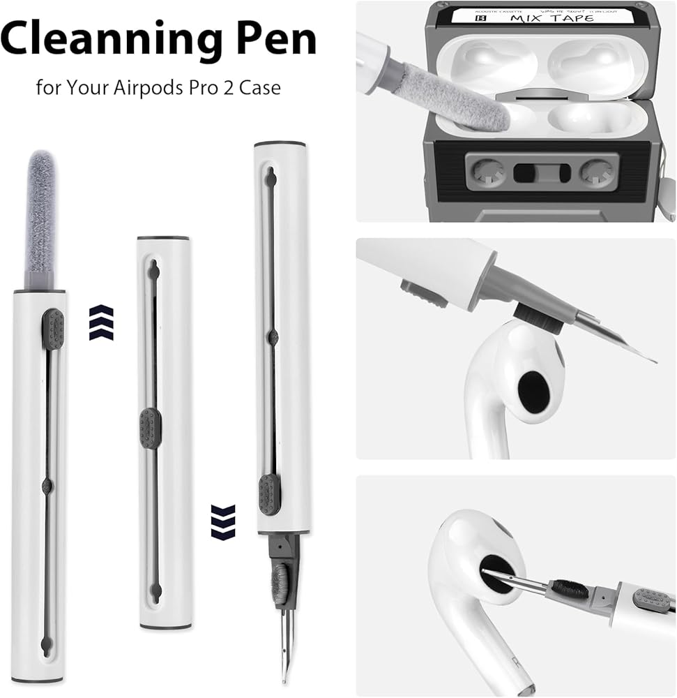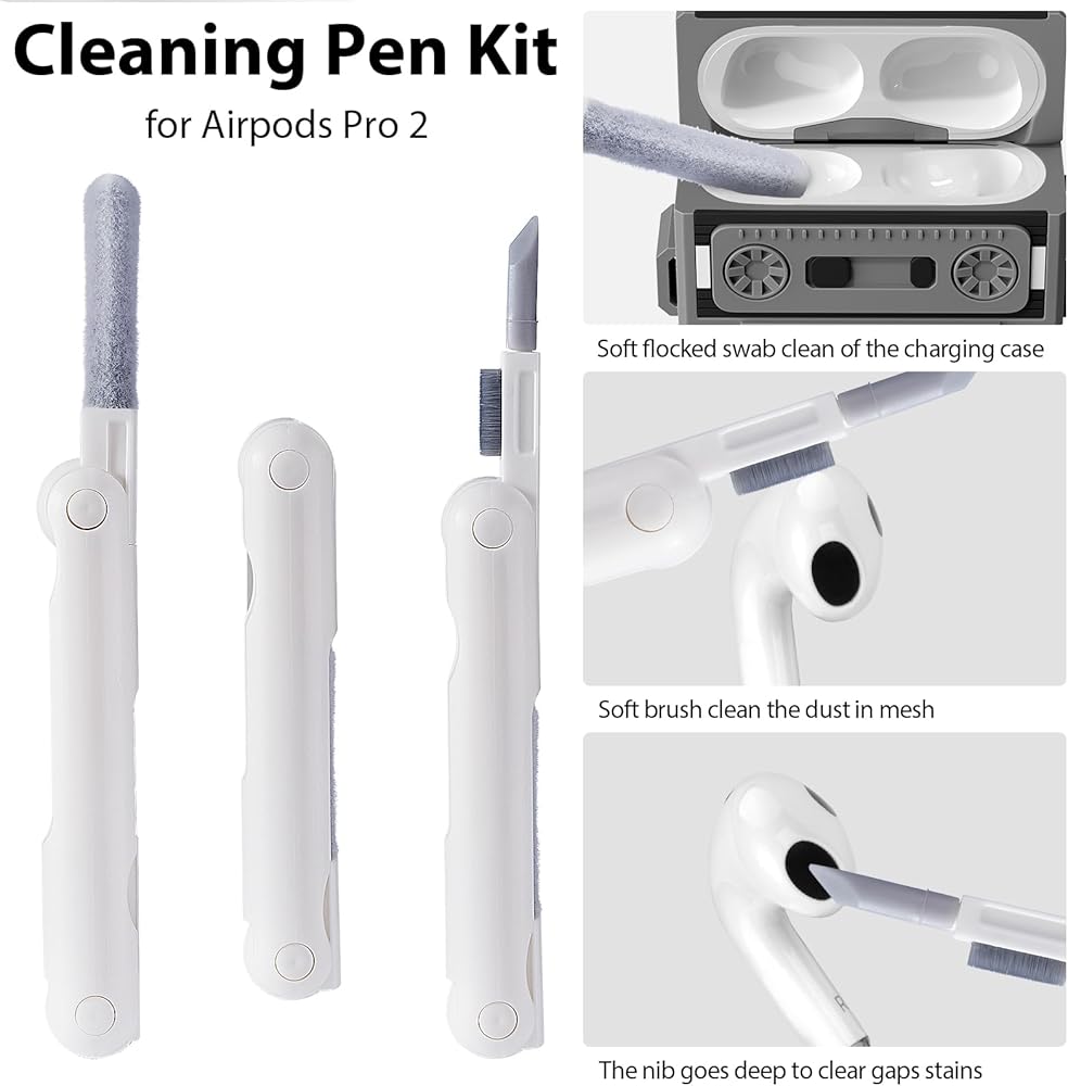 ✨【قلم تنظيف متعدد الوظائف وحبل محمول】: مجموعة تنظيف علبة airpod pro 2 مع فرشاة عالية الكثافة، وإسفنجة ناعمة ورأس قلم معدني، يمكنها إزالة الفجوات والثقوب في سماعة الأذن، وامتصاص الغبار الناعم داخل سماعات الأذن اللاسلكية. حافظة شحن، حافظ دائمًا على نظافة حافظة Airpod Pro الجيل الثاني، تأتي هذه الحافظة مع حبل مجدول قابل للتعديل، حتى تتمكن من حملها بسهولة
