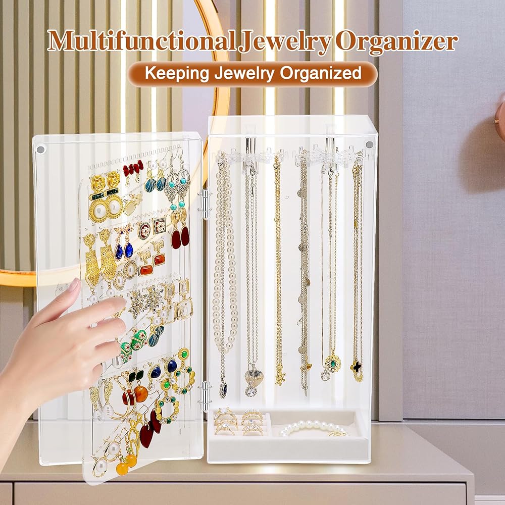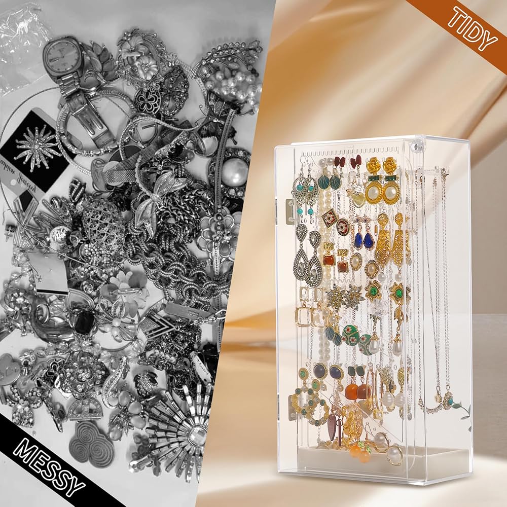 • 【خيارات هدايا عملية】منظم حامل القلادة ضروري لكل امرأة كحامل عرض مجوهرات عملي وأساسي. هدية جميلة للأم، والصديقة، والزوجة، والابنة، والأخت، والصديق الحميم، وزميل الصف، والزميل. لا توجد طريقة أفضل لتقديم منظم المجوهرات الشفاف هذا كهدية لأحبائك.