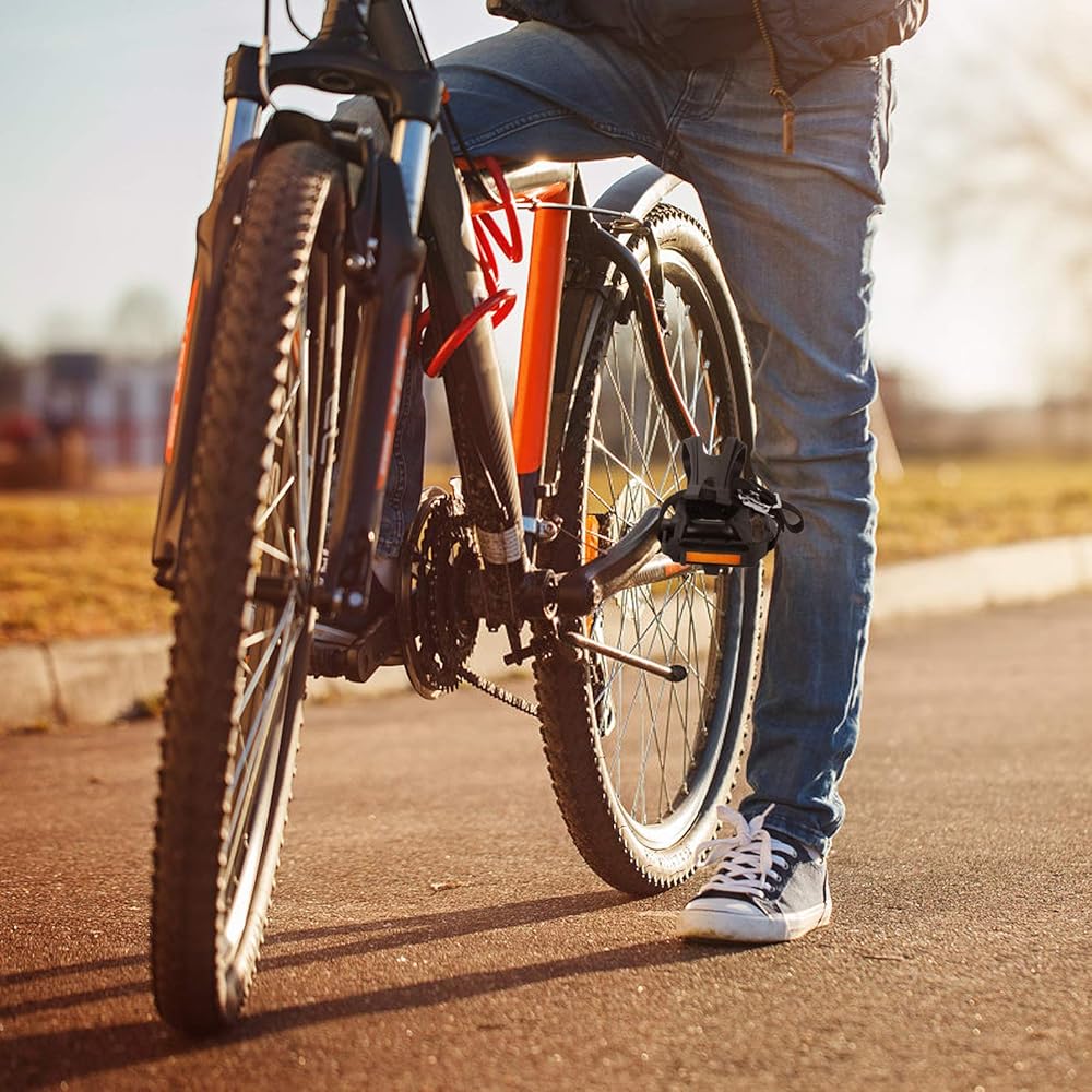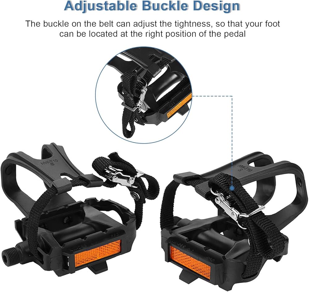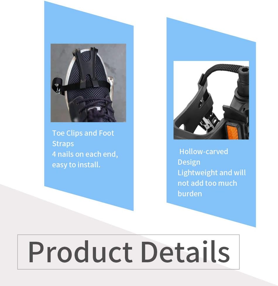 【Enhanced Grip and Stability】Equipped with toe clips and straps, these pedals ensure an improved grip, reducing the chances of your feet slipping off during rides. This enhances stability and control, making your cycling experience safer and more enjoyable.