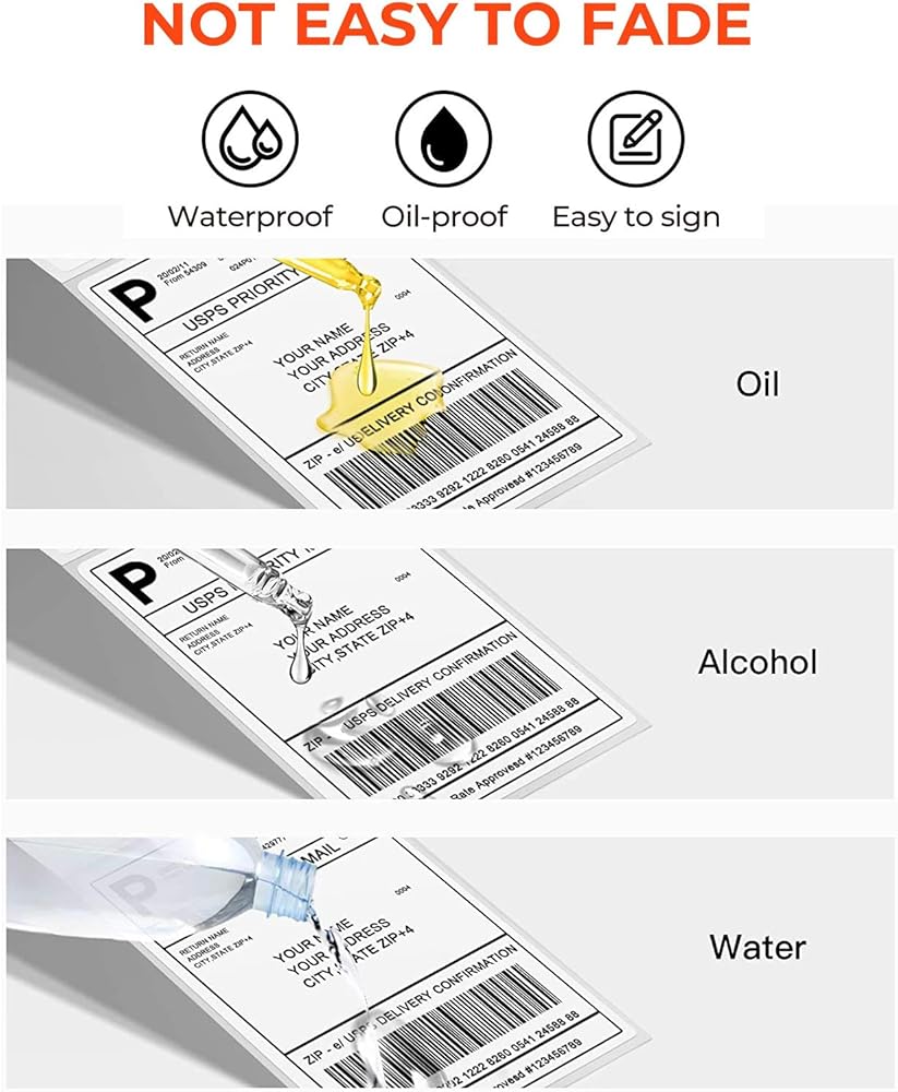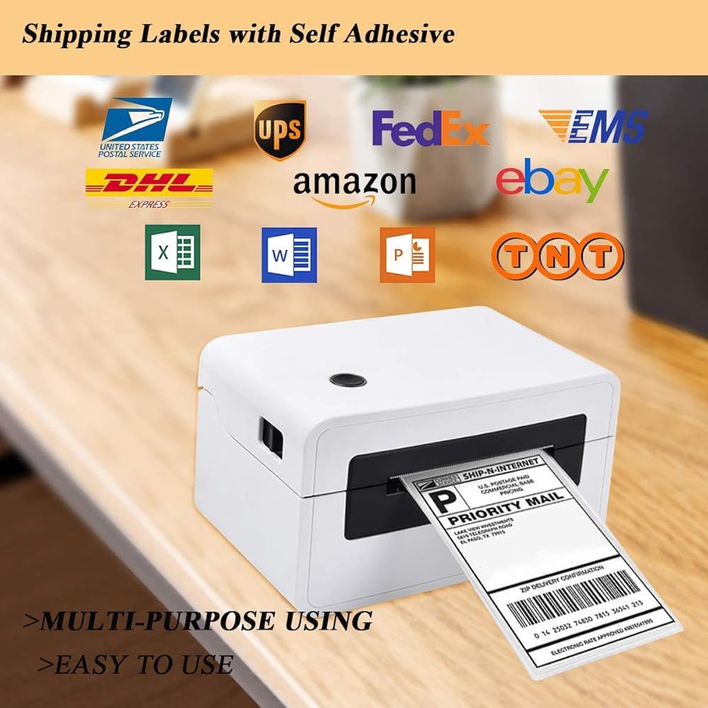 ✔توافق قوي - ملصقات الطابعة متوافقة تمامًا مع الطابعات الحرارية المباشرة، دون التسبب في انحشار الورق. معتمد من USPS، UPS، FedEx، DHL Amazon، eBay وPAYPAL.