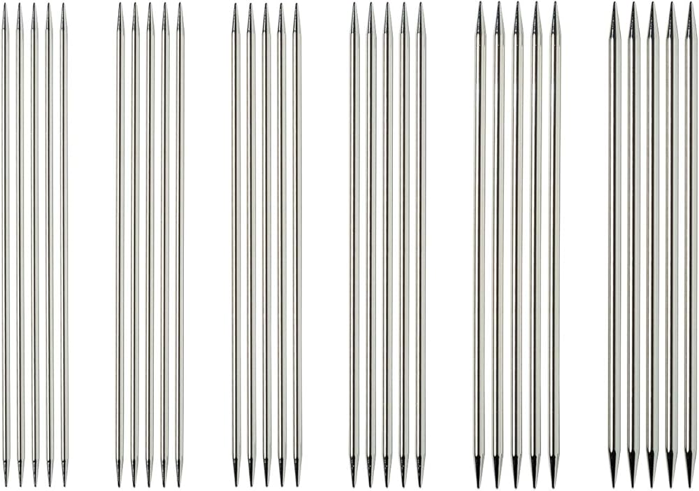 قوية ومتينة: مع نقاط مدببة حادة في كل طرف، تعمل إبرنا المزدوجة بشكل أفضل مع الحياكة ذات المحيط الصغير مثل الأكمام، أو تيجان القبعة المتناقصة باستمرار أو حتى أصابع القفازات.