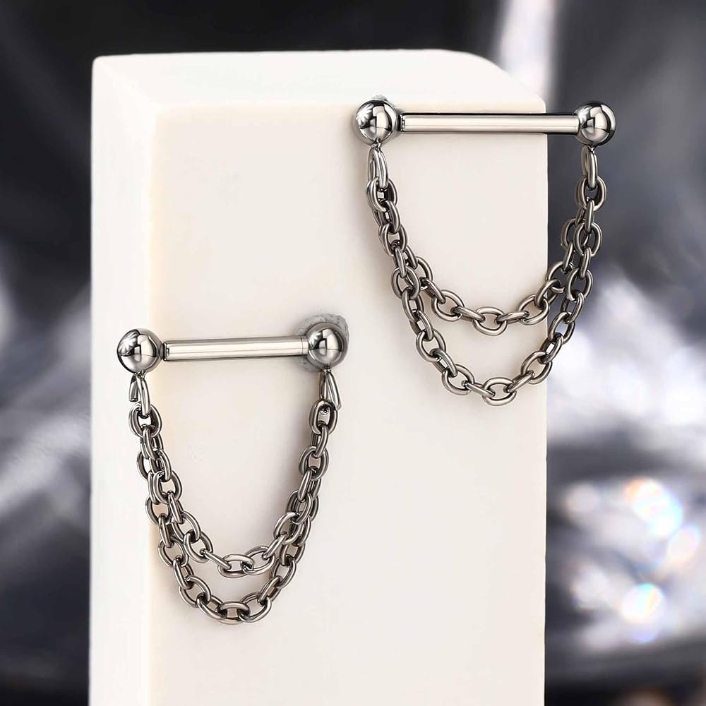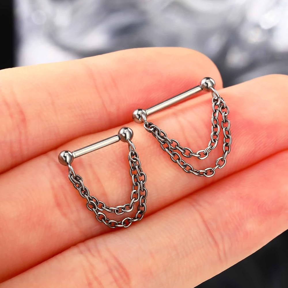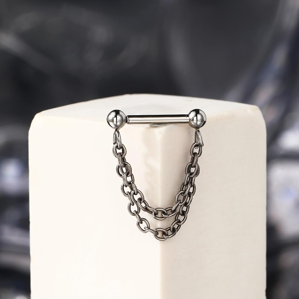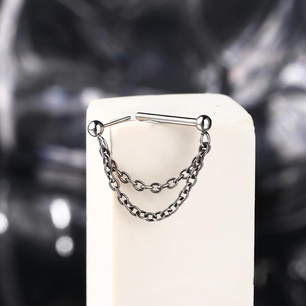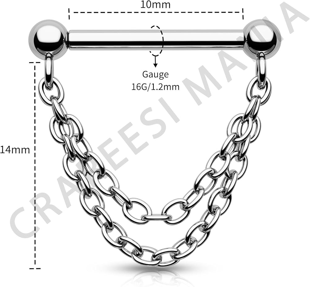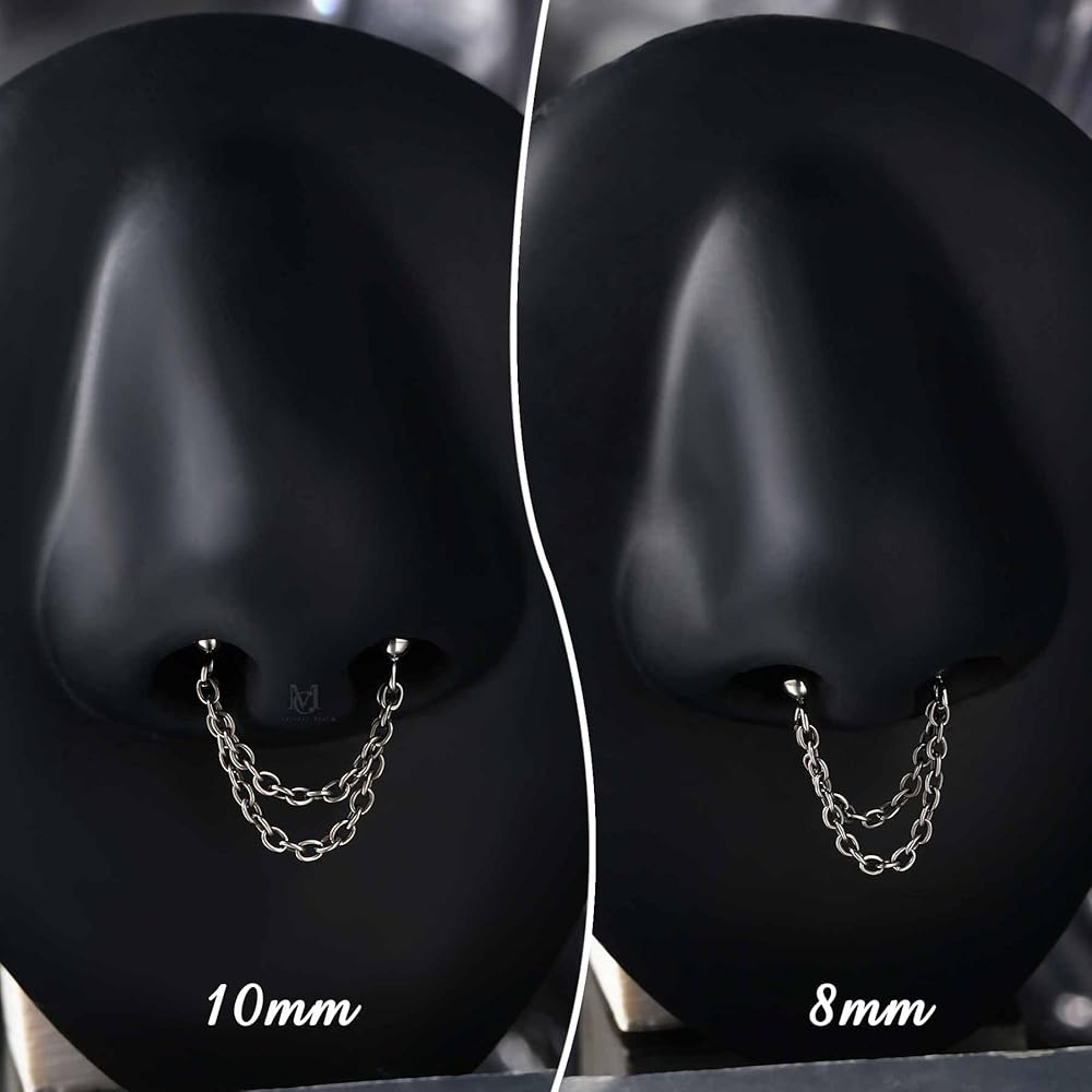 [تصميم مبتكر]: قطعة واحدة من حلقة الحاجز بتصميم سلسلة مزدوجة. التصميم يجعل ثقب الحاجز أكثر شخصية ويجعلك مميزًا. حجمين لتختار.