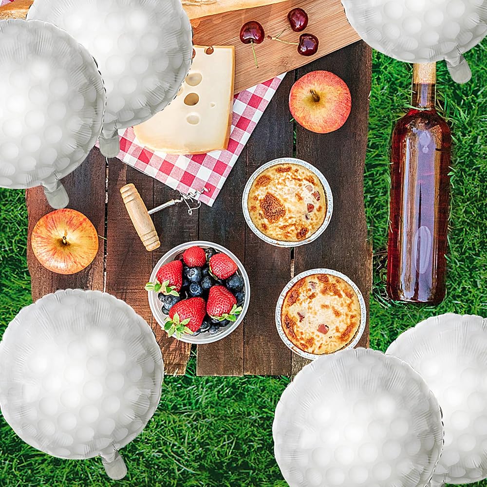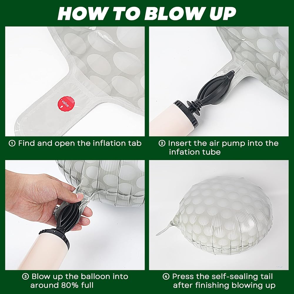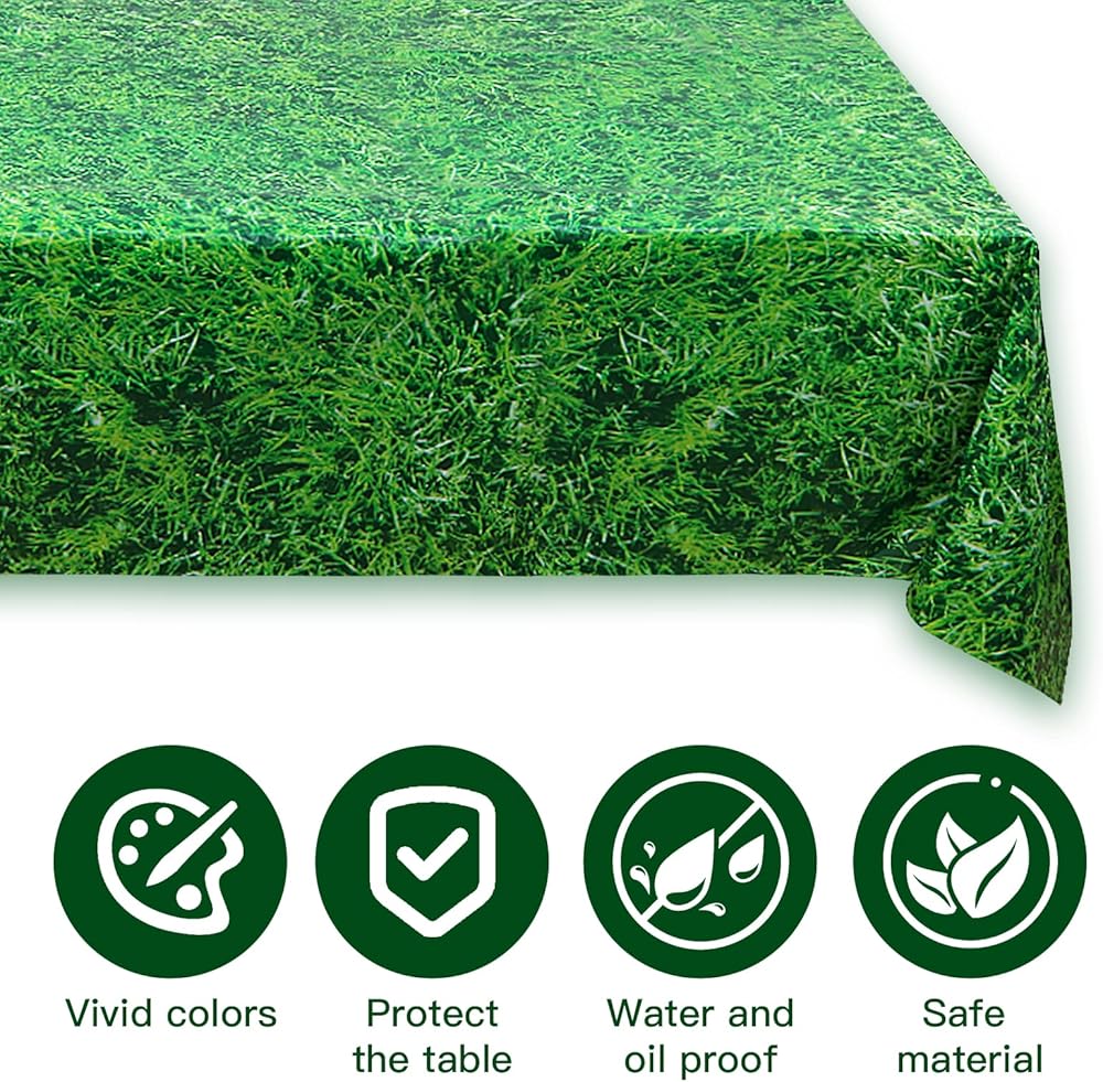 Vivid Design and Easy to use: our beautiful green grass tablecloth is designed with vivid grass pattern, Looks like real green grass across the entire surface. And for golfball balloons, you can fill them with helium to make the balloon fly or fill it with air (only the former can make it fly); The balloons are self-sealing, they will seal automatically after inflation, there are no need for additional operation, easy and simple