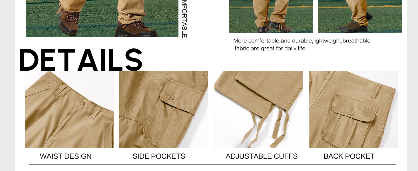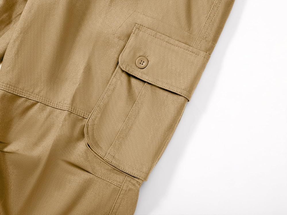جيوب متعددة: 4 جيوب كبيرة للشحن وجيبين جانبيين للاستخدام اليومي. الجيوب الأربعة الأكبر في السراويل الكاجوال مزودة بزر. أكثر أمانًا لحمل الأغراض المتنوعة عند الخروج.