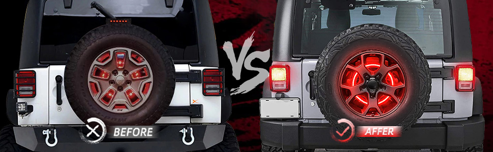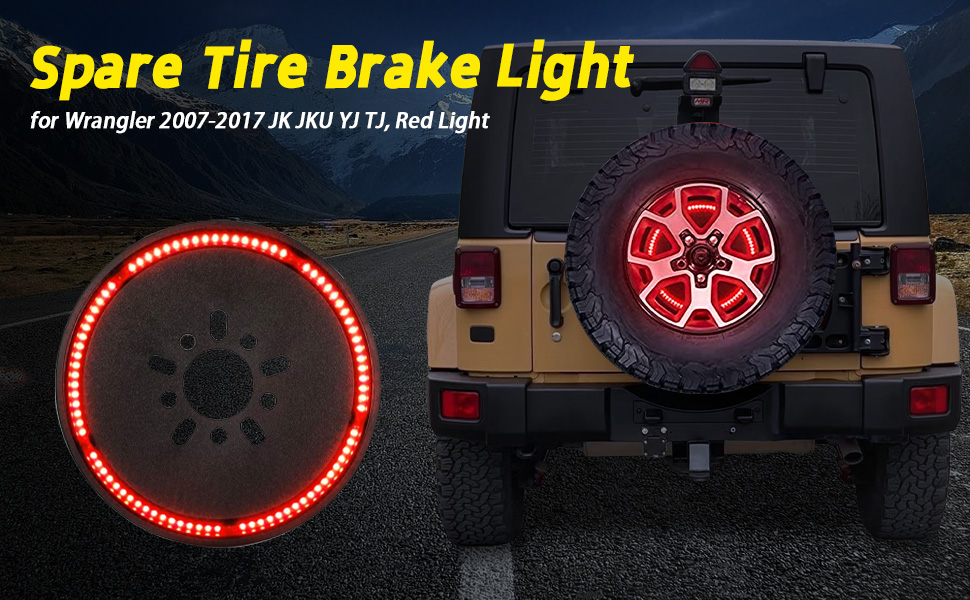 الملاءمة: يتوافق ضوء فرامل الإطارات الاحتياطية مع 2007-2018 JK JKU YJ TJ مع جميع العجلات ذات قطر الحافة من 16 إلى 20 بوصة ويعمل مع أنماط العروة 5x5 و5x4.5 و5x5.5 بوصة.