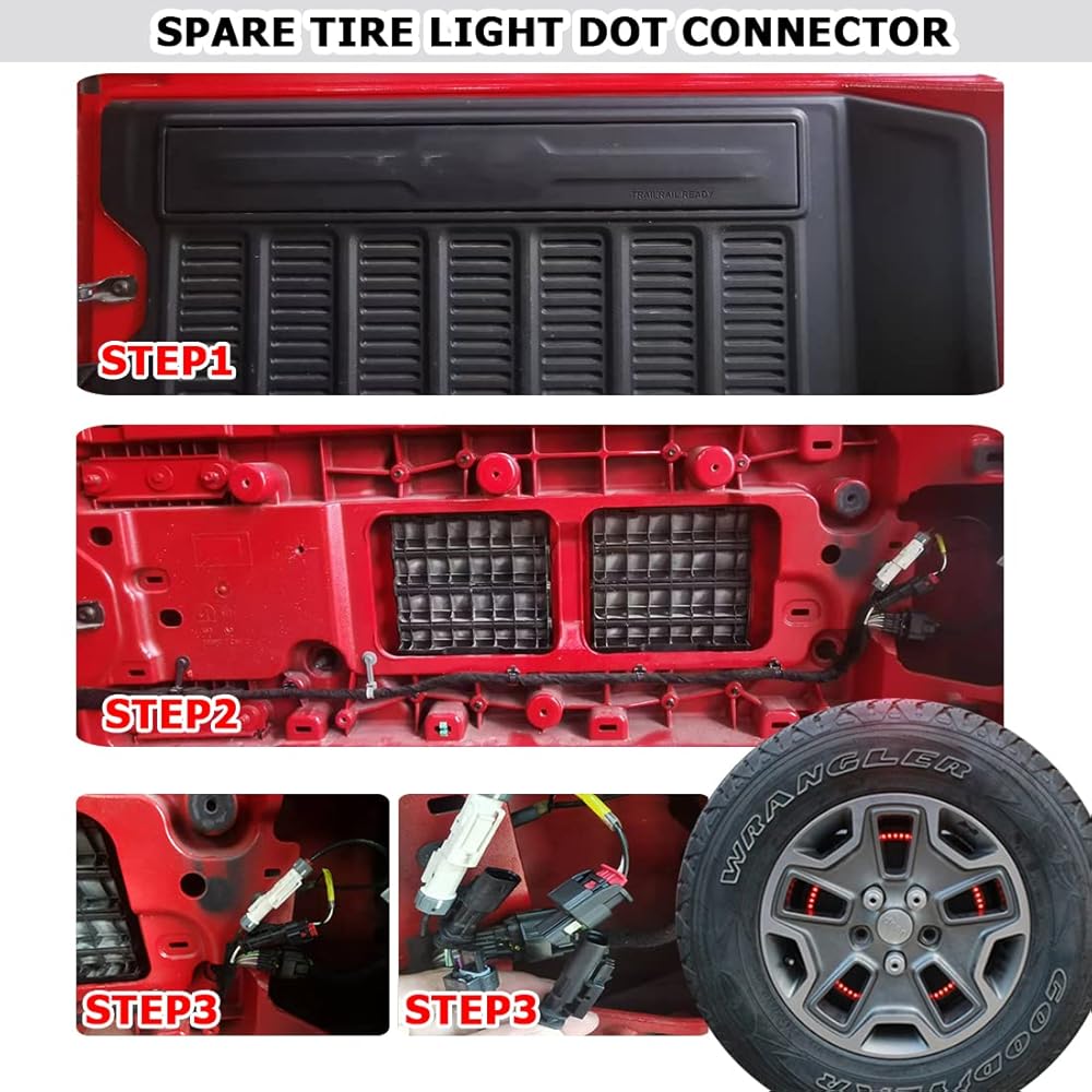 ضوء فرامل الإطارات الاحتياطية، حلقة ضوء الفرامل، ضوء الإطار الخلفي، أضواء عجلة الفرامل الثالثة حلقة LED متوافقة مع Jeep Wrangler 2007-2017 JK JKU YJ TJ، ضوء أحمر، التوصيل والتشغيل