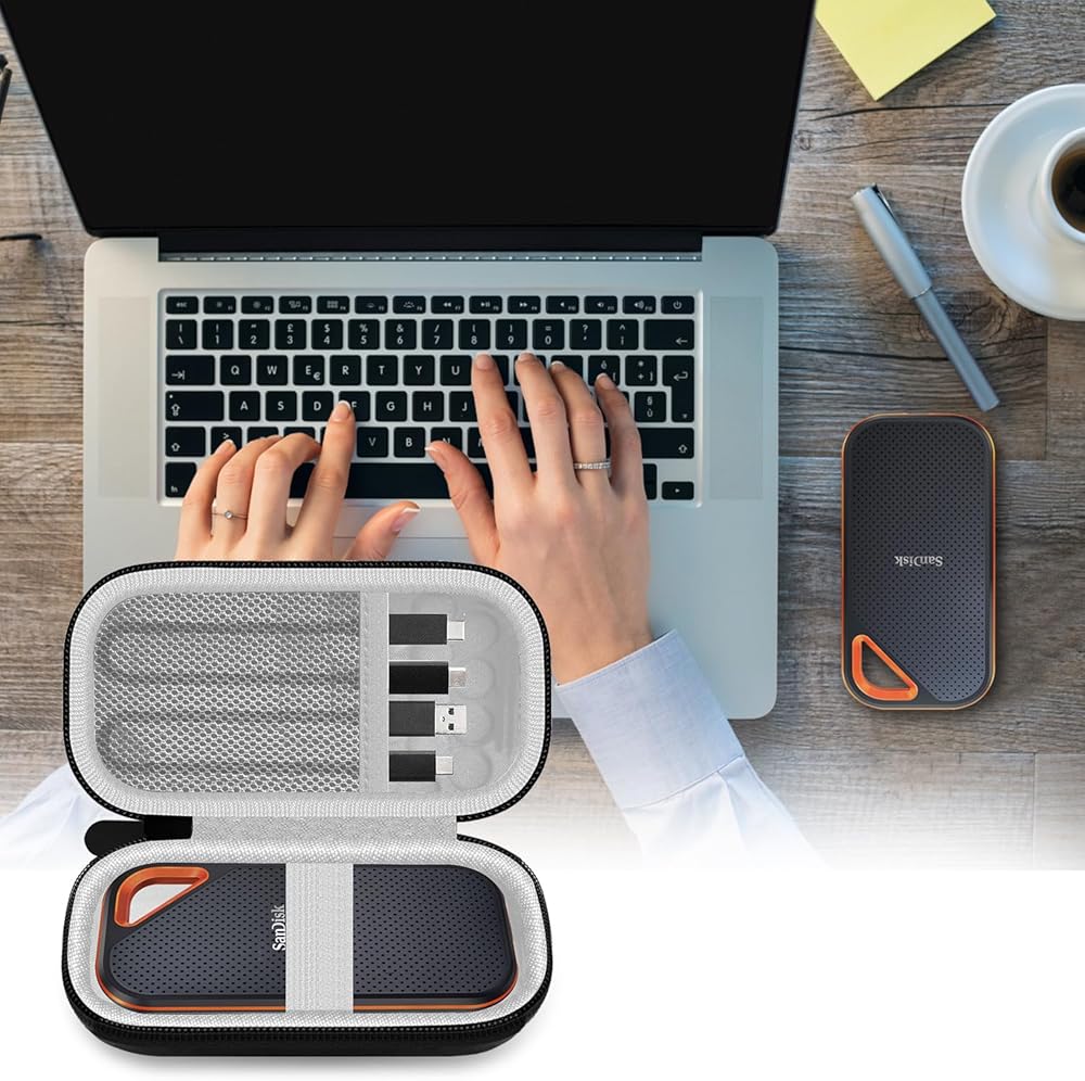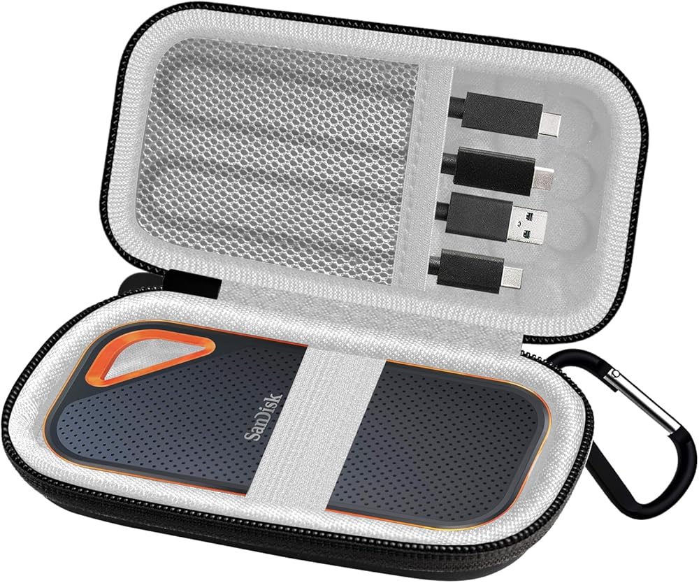الأبعاد: الأبعاد الخارجية: 5.2 بوصة × 3.1 بوصة × 1.6 بوصة؛ الحجم الداخلي: 4.72 × 2.4 × 1 بوصة. ستحمي حزمة محرك الأقراص الصلبة عالية الجودة جهاز SanDisk Extreme Portable SSD باهظ الثمن. (الجراب فقط!)