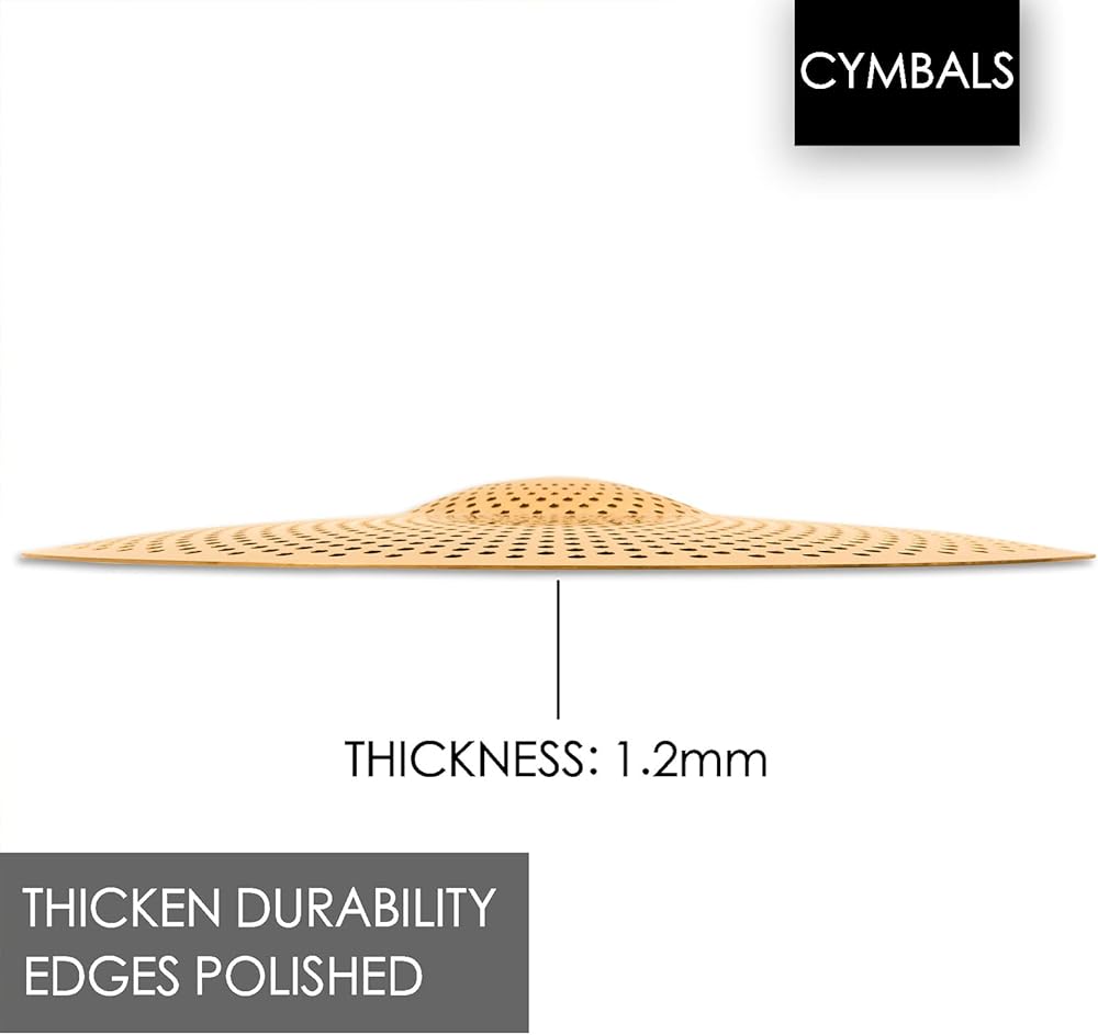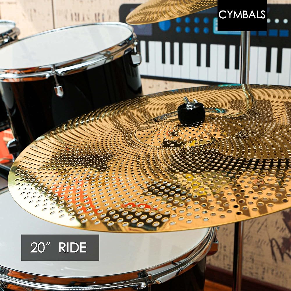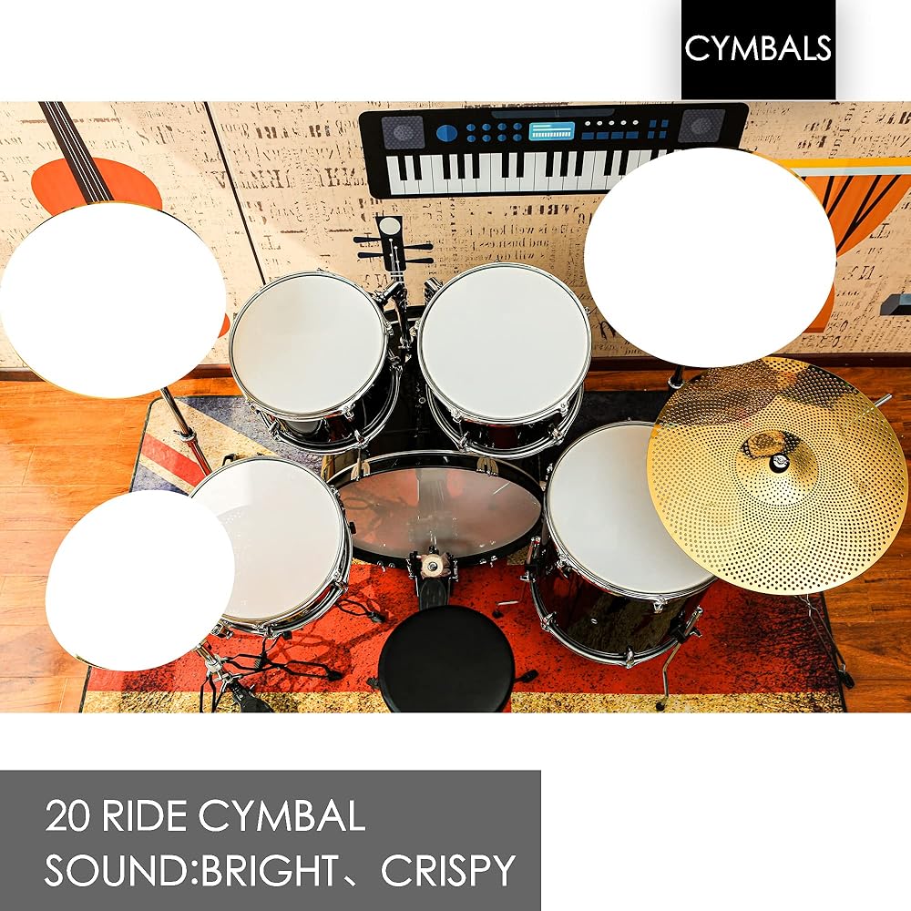 🎶 حجم أقل وصوت حقيقي - يتميز صنج الركوب منخفض الحجم بدرجة صوت أقل وصوت أكثر دفئًا وأكثر واقعية أثناء ركوب التصادم ويشعر وكأنه صنج حقيقي عند اللعب، ولكنه أكثر هدوءًا بنسبة تصل إلى 60%-70% من الصنج التقليدي دون فقدان الشعور. من الصنج المعدني.