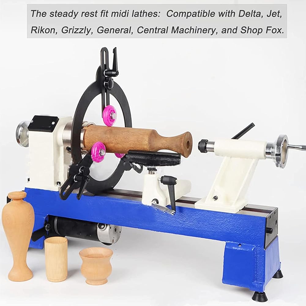【ADJUSTABLE WHEEL】- The position of each wheel can be adjusted individually. Which gives it a wide range to easily adapt to any turning pieces from 1" to 5.5". so it can be used as a bowl rest as well as a steady rest.