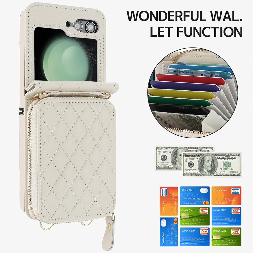 〖التوافق〗- حافظة المحفظة متوافقة فقط مع هاتف Samsung Galaxy Z Flip 5 5G [إصدار جديد 2023]، (نصائح: فقط حافظة Galaxy z Flip 5 النسائية اللطيفة المزودة بحبل، ولا تشمل الهاتف أو البطاقة).
