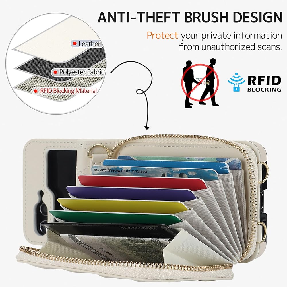 〖درع RFID مع حبل حول الجسم〗 - يتم تطبيق مادة حجب RFID على حامل بطاقات محفظة Galaxy Z Flip 5 5g لحماية معلوماتك الخاصة في شرائح بطاقاتك من السرقة عبر إشارات الراديو. مع حبل قابل للفصل يسمح لك بحملها كحقيبة هاتف Flip 5 أو حقيبة كروس، مما يجعلها مريحة جدًا للقراءة والمشاهدة وتصفح الويب والدردشة وجهًا لوجه مع الأصدقاء دون القلق من فقدان أو سقوط