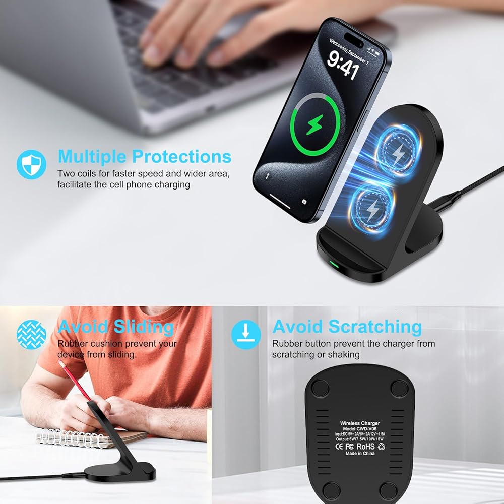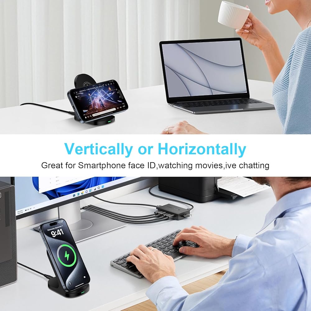 ✔The wireless charging dock is equipped with two built-in coils for a wider charging area.