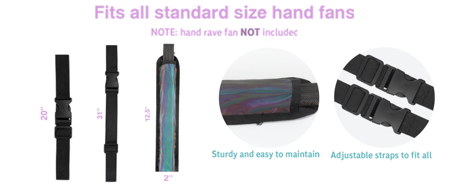 🪭【آمن ومتين】: مصنوع من نسيج عاكس قوي، حامل المروحة الخاص بنا مصمم ليدوم طويلاً. يضيف سطحه العاكس لمسة أنيقة إلى ملابسك مع الحفاظ على أمان المروحة