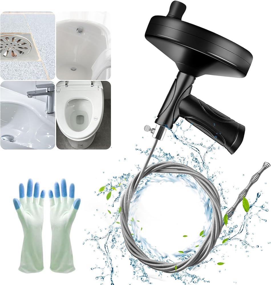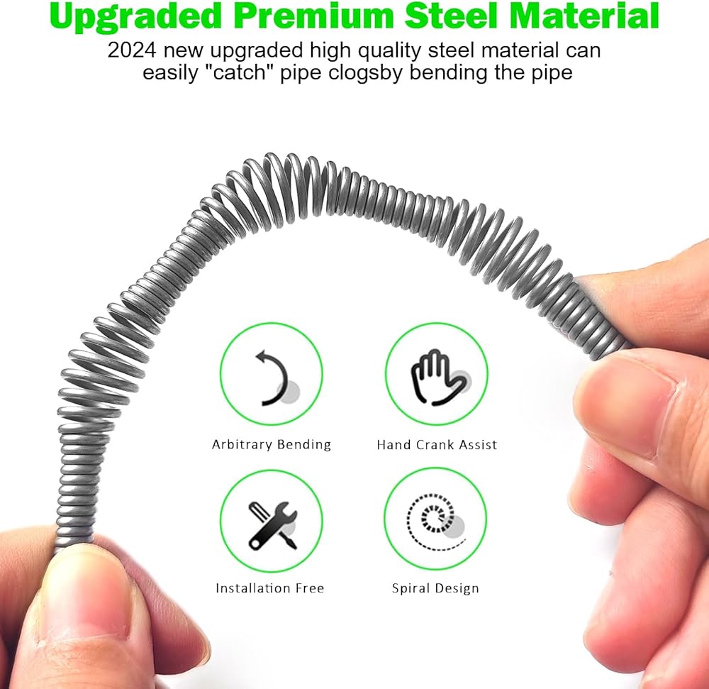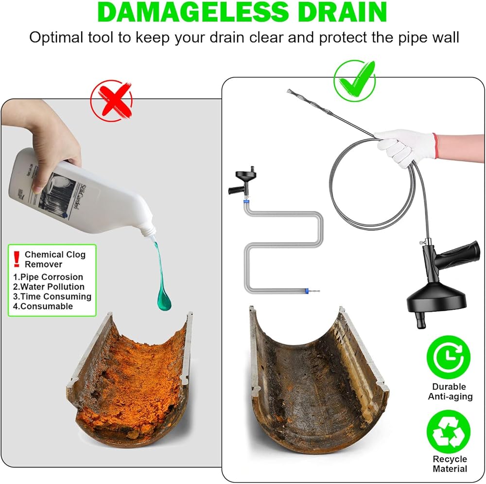 [33 Ft of Flexible Steel Wire Easier to Reach Difficult Clogs]: This professional plumbing snake drains auger comes with 33 ft of heavy-duty spring steel cable that goes beyond traps to remove most household clogs. Best highly effective power drum auger for unclogging drains and keeping your drains flowing smoothly. [Easy Operation and Detailed Operating Instructions]: The drain snake has an ergonomic pistol grip that simplifies use and makes for more comfortable handling. The flexible spring can be bent more than 90 degrees without breaking or kinking, which enable you to reach the sink clogs efficiently. Besides, if you don't know how to use it, the detailed operating instruction will teach you how easy to do. [Professional and Multiple Use to Clear Most of Clogs]: You can flexibly adjust different lengths to adapt to various depths of drain pipes by whirling the screw switch and pulling the springs back and forth. Hence, the plumbing snake drain can be widely used in kitchen sinks, bathtubs, bathroom drains, sewers, and floor drains to solve most of the household clog problem. It is recommended not to use it in the toilet.