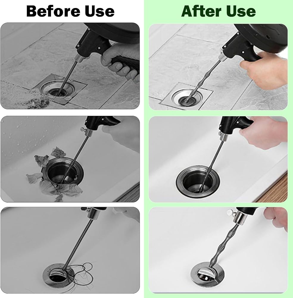 [Reusable Drain Auger Perfect for The Average Household]: The drain auger can clear clogged drains easily and safely. Effectively to remove sink clogs which usually caused by grease or overworked garbage disposers. It is better than to spending over hundreds of dollars in liquid drain removals or calling a plumber every time when you meet a clogged drain in your house. It is reusable and saving your money and time.
