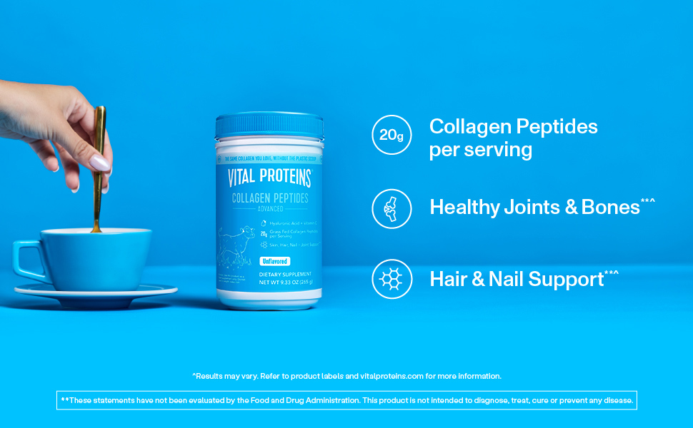 مكون واحد بسيط: ببتيدات الكولاجين عبارة عن مكمل مسحوق ممتاز يحتوي على ببتيدات الكولاجين المتحللة - مصدرها جلود الأبقار التي تتغذى على العشب والمراعي.