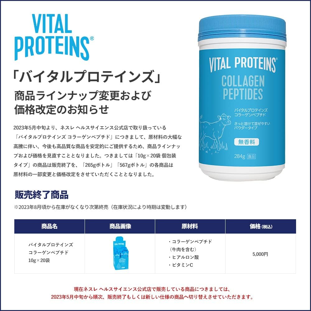 بروتينات حيوية مكملة لمسحوق الكولاجين الببتيدات المتحللة مع حمض الهيالورونيك وفيتامين C - غير معدلة وراثيًا، خالية من منتجات الألبان والغلوتين، بدون نكهة، 9.33 أونصة