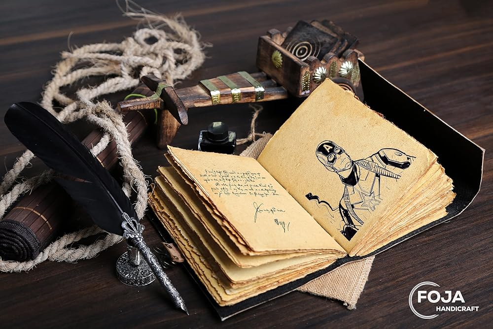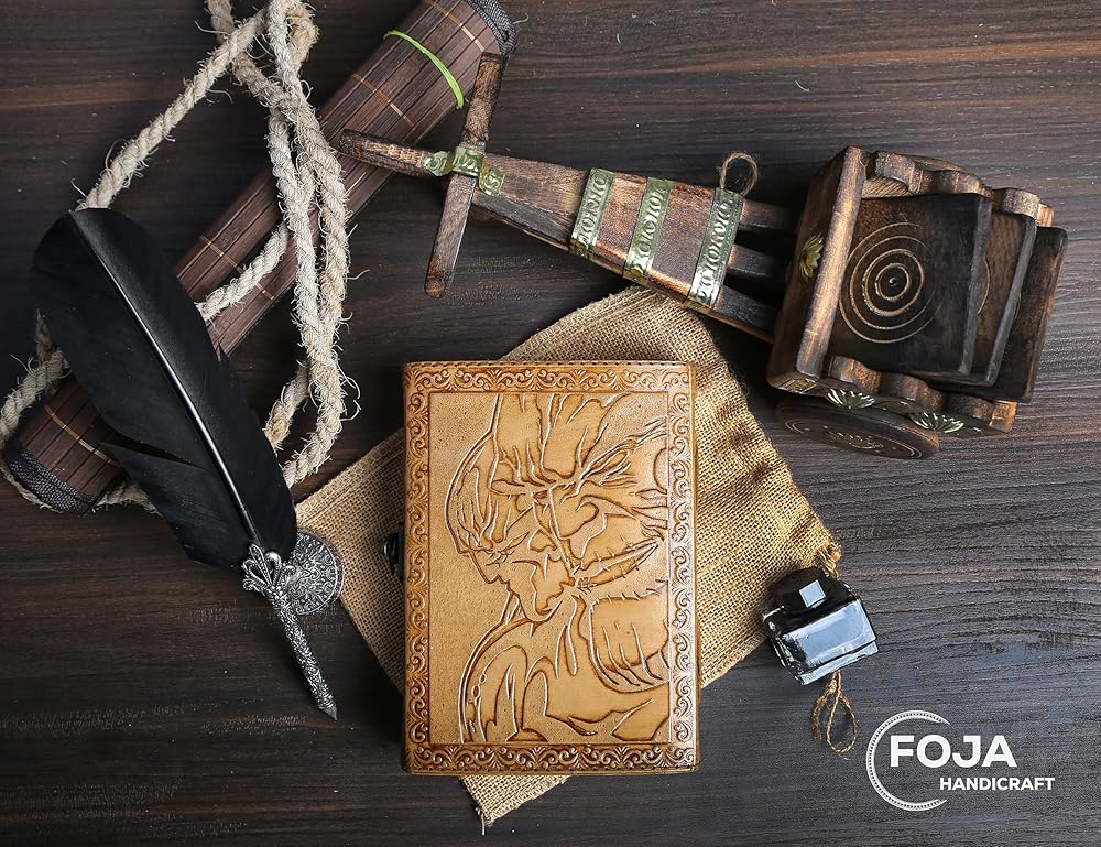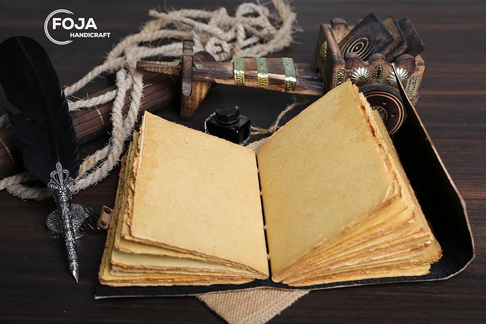 ورق عتيق مصنوع يدويًا بشكل أنيق من العصور الوسطى - ورق قطني ريفي ذو مظهر قديم جنبًا إلى جنب مع جمال الجلد المتعثر، تمت حياكته يدويًا على يد الحرفيين، مما يخلق تذكارًا سوف تعتز به إلى الأبد. يُشكل هدية رائعة للرجال والنساء والويكا في حياتك!