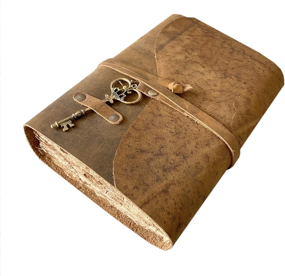 مجلة الجلود الرئيسية - مجلة جلدية ملزمة له - دفتر رسم جلدي - كتاب الظلال مجلة خمر دفتر ملاحظات فارغ - حافة سطح السفينة العتيقة المصنوعة يدويًا 200 ورقة (بني 7 × 5 بوصات)