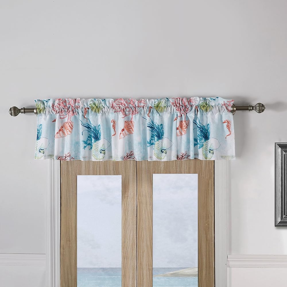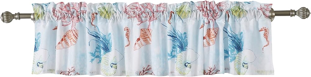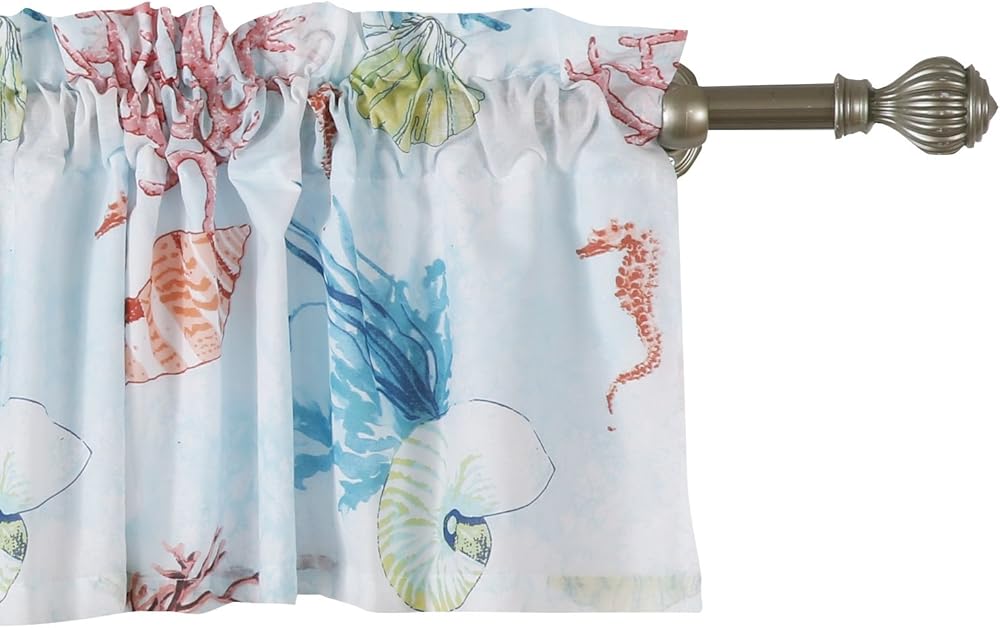 Enhance your space with coastal charm! crafted from soft, machine washed microfiber, the Sarasota window valance features a lively display of ocean marine life on a glassy white and sea foam blue ground. Lined with solid color fabric for increase privacy and sun protection. Each valance features a three-inch rod pocket fits most curtain rods for hanging and a decorative 2-inch header. Dimensions: 84 inches wide x 14 inches long (plus 2-inch header). 100Percent polyester microfiber face and back (2 ply). machine wash. Imported.