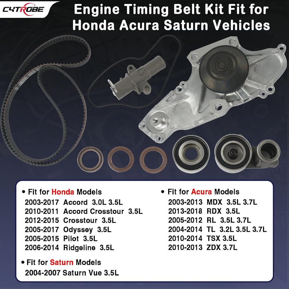 طقم حزام توقيت المحرك مع مضخة مياه متوافقة مع 2003-2018 Honda Accord Crosstour Pilot Odyssey Ridgeline، Acura RL TL RDX MDX TSX ZDX، Saturn Vue V6 3.0L 3.5L 3.7L استبدال TCKWP329 TKH-002