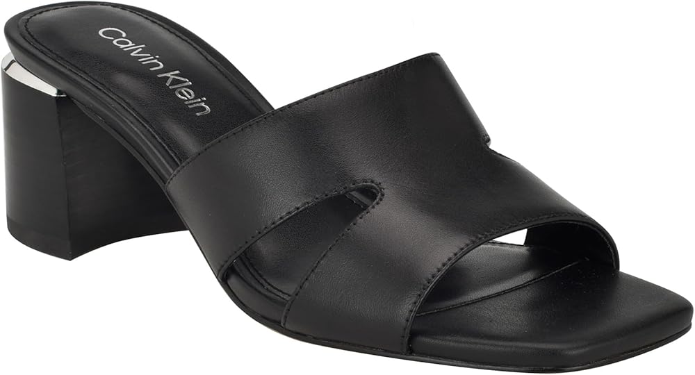 Stylish and cool, the Calvin Klein dress sandals are a wardrobe must have. It features a mid block heel, modern square toe and slip-on silhouette. The Valery will go with any outfit.