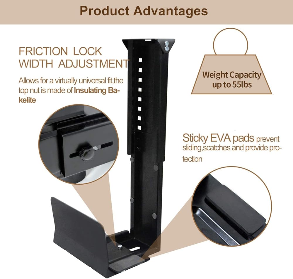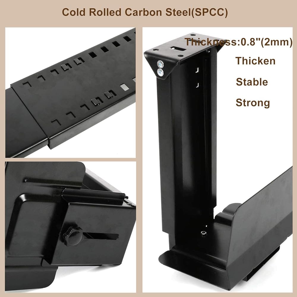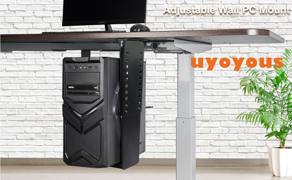 حامل وحدة المعالجة المركزية uyoyous تحت المكتب، قابل للتعديل على الحائط، حامل برج الكمبيوتر عالي التحمل، عرض قابل للتعديل من 5.7 بوصة إلى 9.6 بوصة، الارتفاع من 11.8 بوصة إلى 19.7 بوصة، يحمل ما يصل إلى 55 رطلًا