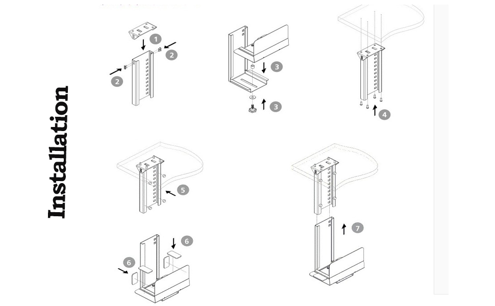 • 【سهلة التجميع】: لا توجد حاجة لأي أدوات إضافية، تأتي مع الأدوات المطلوبة ودليل التثبيت، سهلة التركيب وفقًا للخطوات الموجودة في الدليل. لا يتم تركيب دعامة الكمبيوتر بشكل مريح فقط تحت المكتب أو سطح العمل المسطح، ولكن أيضًا على الحائط لتسهيل الوصول إليها.