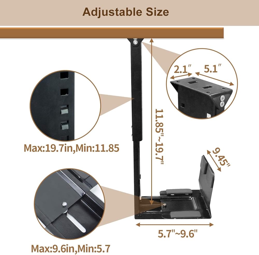 • 【حامل برج كمبيوتر عالمي】: يناسب معظم أبراج الكمبيوتر بارتفاع قابل للتعديل من 11.8 بوصة إلى 19.7 بوصة (300-500 مم)، العرض من 5.7 بوصة إلى 9 بوصة (145-245 مم). السُمك: 0.8 بوصة (2 مم).