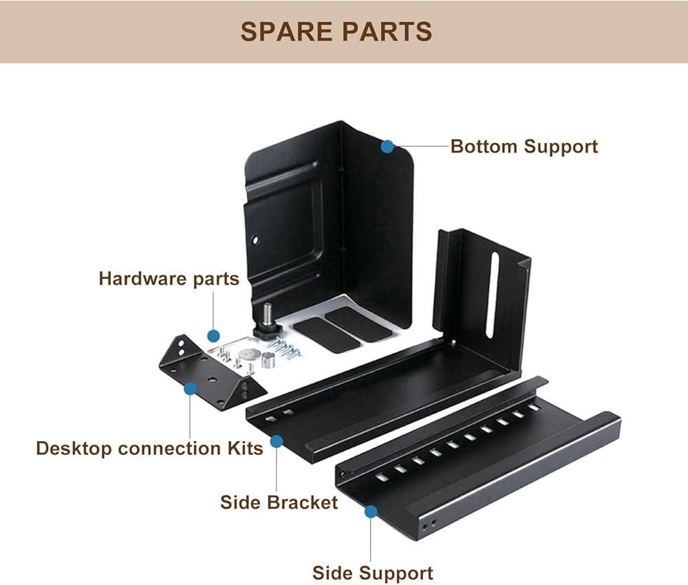 • 【مادة فاخرة】: دعامة التثبيت على الحائط للكمبيوتر وأجزاء الأجهزة مصنوعة من الفولاذ الكربوني المدلفن على البارد (SPCC). تمت معالجة السطح برذاذ بلاستيكي صديق للبيئة لمنع الصدأ، مما يطيل عمر الخدمة.