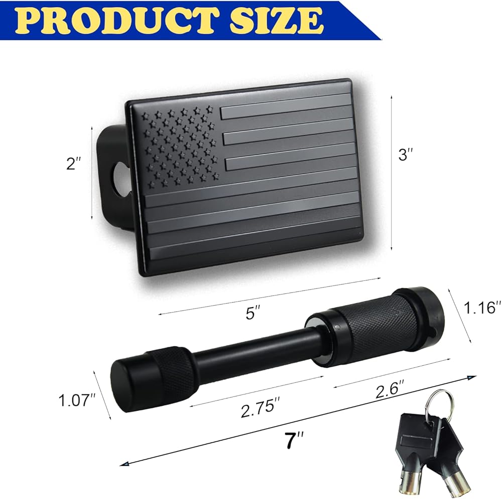 Hook cover kit: Includes a US flag trailer hook cover and a 5/8-inch trailer hook lock to protect your hook cover from theft. (Suitable for 2-inch receiver)
