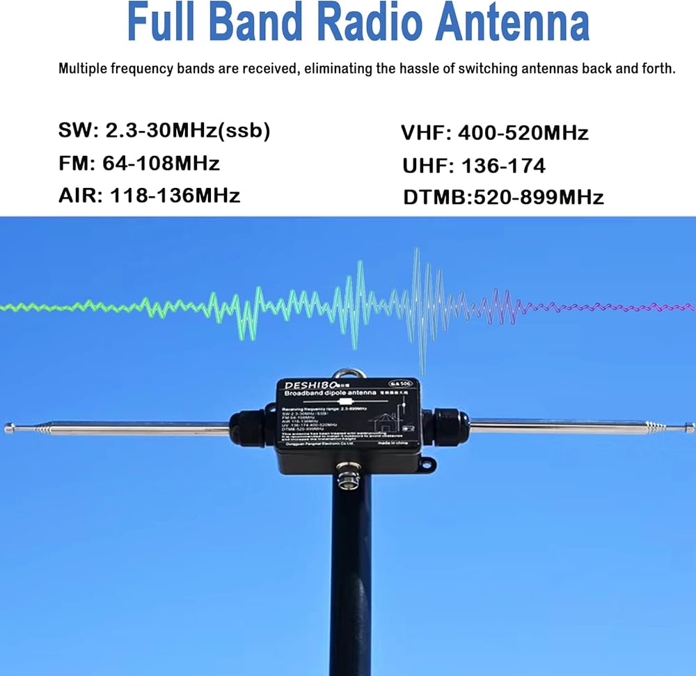 هوائي راديو محمول على الموجات القصيرة GA506، استقبال هوائي ثنائي القطب كامل النطاق من GOOZEEZOO: 2.3-899 ميجا هرتز الإرسال: 90-450 ميجا هرتز SW/FM/AIR/UV/DTMB هوائي خارجي لراديو لحم الخنزير