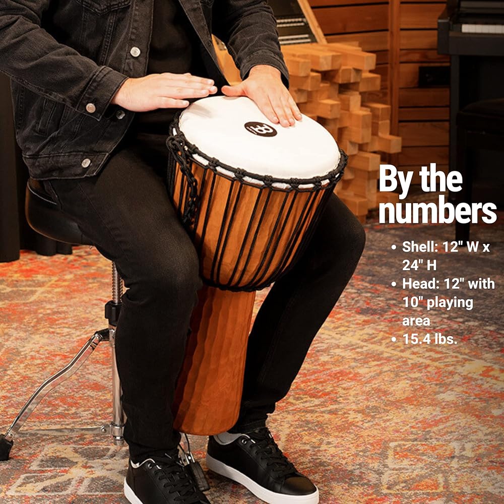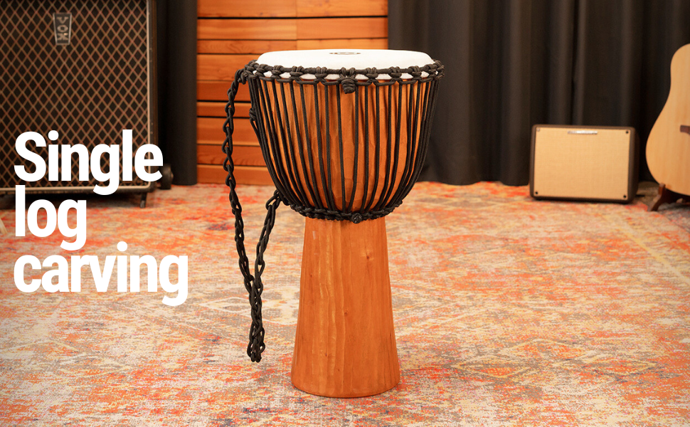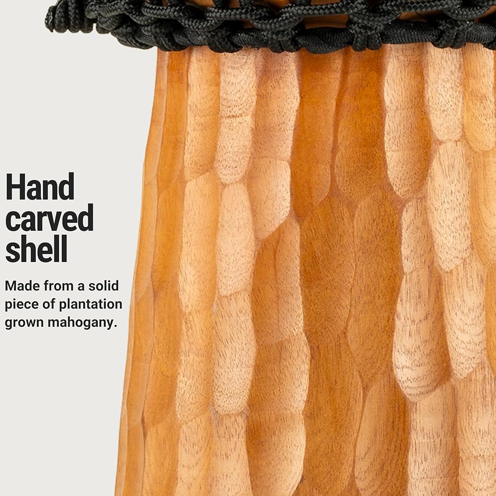 • ملاحظة: يأتي djembe مضبوطًا وجاهزًا للعب بمجرد إخراجه من الصندوق؛ نظام ضبط الحبال من نسيج مالي من غرب أفريقيا يحمل نغمة طويلة الأمد، ونحن نقوم بتمديد الحبال مسبقًا بحيث يبدو رائعًا على الفور (يأتي مع تعليمات الضبط).